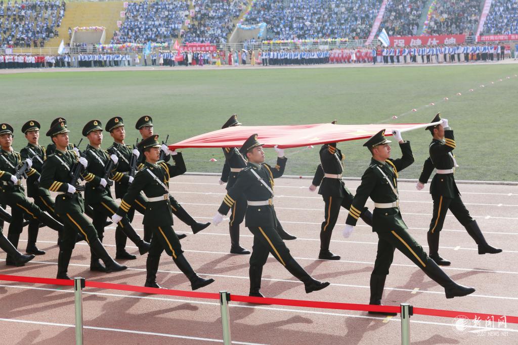 随后,在雄壮的国歌声和校歌声中,五星红旗、校旗和运动会会旗相继冉冉升起。