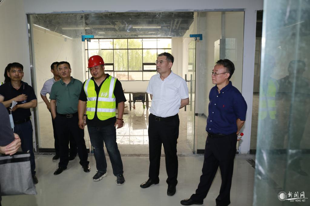 在研究生综合楼2号楼改造项目施工点,校领导详细检查了水电改造、安全装置、配套设施的建设情况,并听取了人事处、前沿院、实验设备处负责人对实验室分配和布局规划的汇报并进行详细指导。