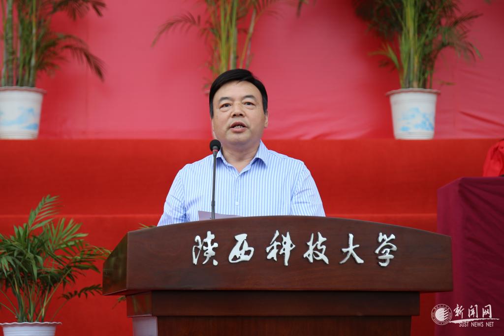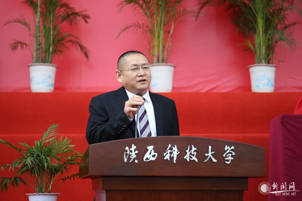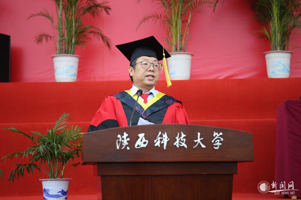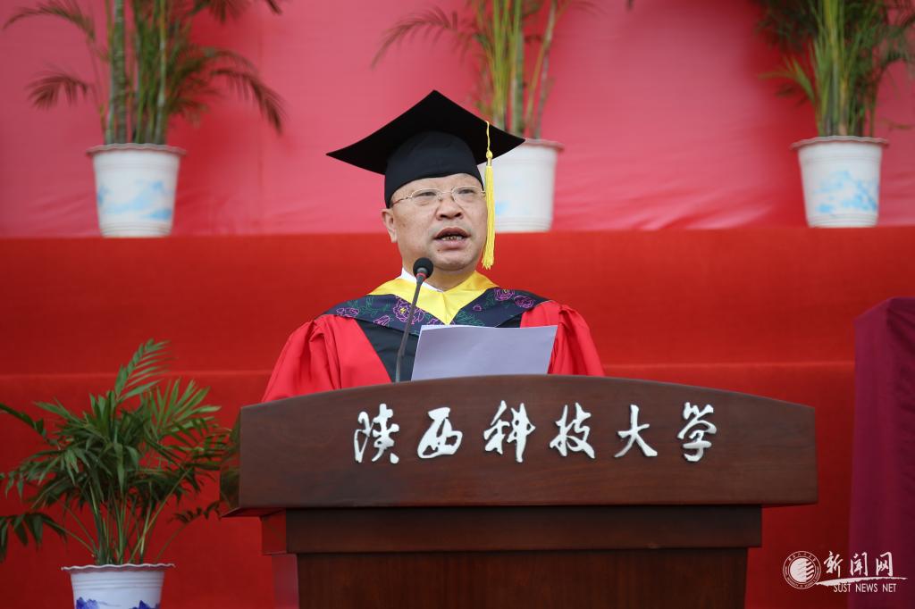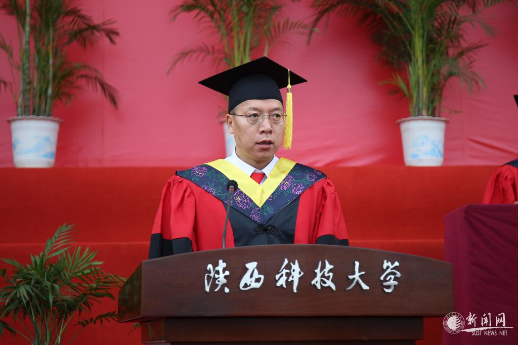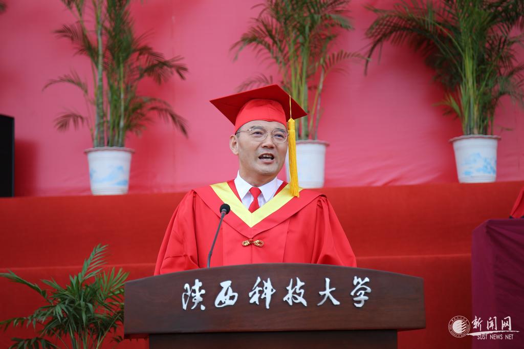 校友代表,厦门校友会会长——李玉柱在致辞中欢迎全体毕业生加入陕科大温暖的校友大家庭,并以母校“三创两迁”大学精神、“至诚至博”校训,喜马拉雅山挺拔与纯然的面貌,西安古都的灵气,加上厦门鼓浪屿日光岩上的铁观音的芳香,作为美好的礼物与祝愿,送给在座的老师、同学,祝大家一起努力,为实现中华民族伟大复兴的中国梦而努力奋斗!
