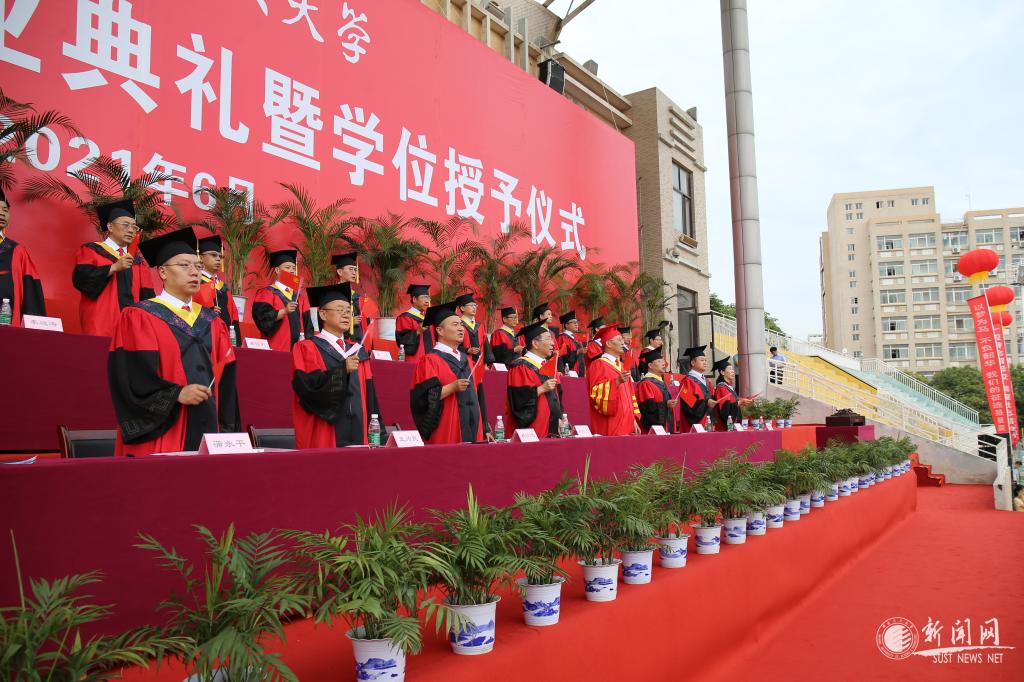 全体在校校领导及校学位评定委员会委员出席毕业典礼。毕业典礼由校长助理郑恩让主持。省级以上教学名师,校级教学督导,学校各相关部门负责人,各学院有关负责人,毕业班全体辅导员,2021届博士、硕士研究生和本科生毕业生(包括1名国际博士毕业生和12名国际硕士毕业生)参加了毕业典礼。