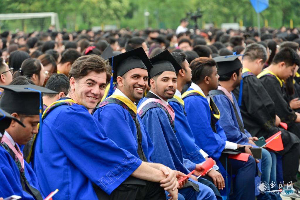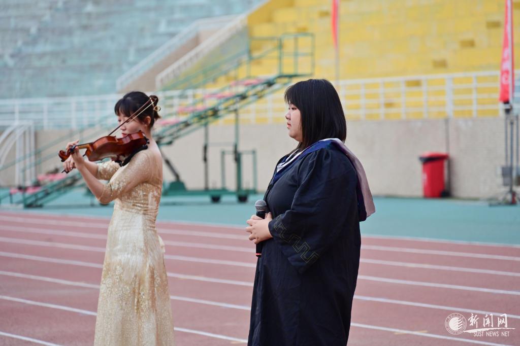 典礼开始前,与会校领导与即将毕业的研究生代表在“至诚至博,博学笃志,服务社会,报效祖国”的桁架前合影留下珍贵的瞬间。10名大学生的合唱串烧《昨日青空》《晴天》《如果我们不曾相遇》《推开世界的门》《向往》,将会前暖场推向高潮。