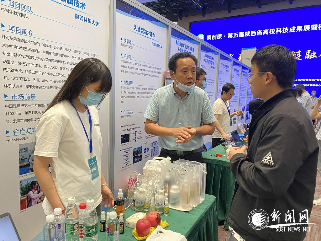 此次高校科技成果展暨校企对接洽谈会以“校企汇聚秦创原,两链融合促发展”为主题,通过展板、模型、样机等形式集中展示科技成果,开展校企洽谈对接,展会包括高校成果路演、企业需求发布、创投机构宣介对接、校企对接洽谈和校企座谈会等。前沿院秉承创新性强、成熟度高、产业化前景明确的原则,认真梳理出德赢官网35项最具潜力科技成果,最终“苹果免套袋膜技术项目”等14项成果成功入选并展出,展出数量居陕西省高校第二位。这些成果引起了陕西多家本地企业的广泛关注。