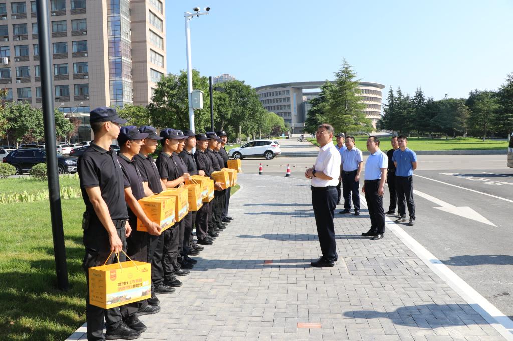 7月25日,校长李志健、党委副书记王道安、副校长李学军深入到高温天气下坚守工作岗位的一线职工中间,为他们送去夏日的清凉与关爱。