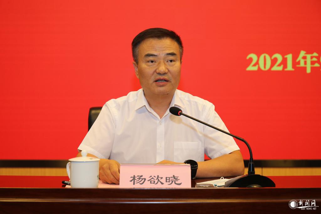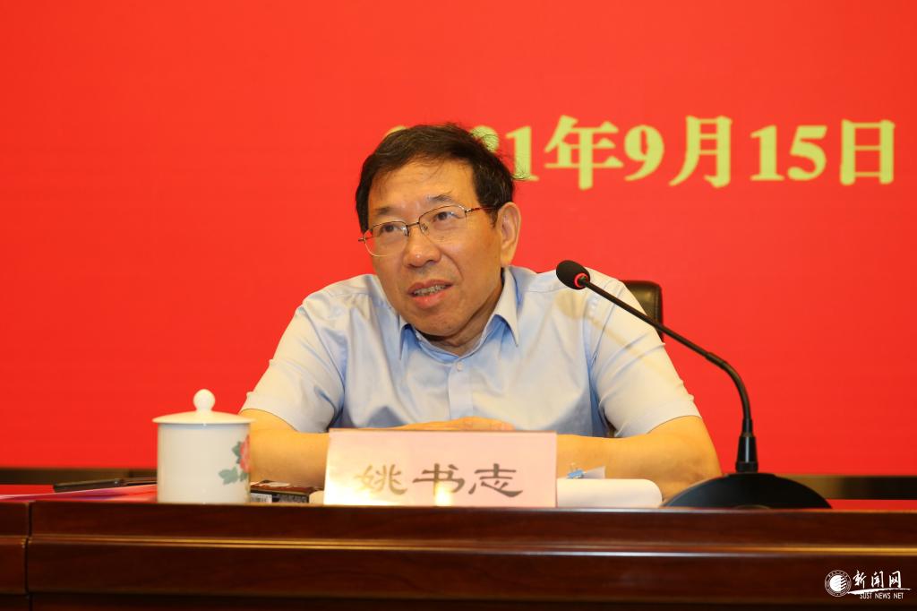 姚书志就进一步聚焦聚力高质量发展,推进学校党建工作再上新台阶提出了三点工作要求。一是以学习习近平总书记“七一”重要讲话为指引,落实落细第27次全国高校党的建设工作会议精神。要把讲话精神作为下半年党史学习教育的核心内容,全面学、系统学、深入学,真正做到学深悟透、融会贯通、运用自如;要落实好意识形态工作责任制,守正创新做好高校思想政治工作,加快配齐建强高校专职思政课教师、专职辅导员队伍,各二级单位主要负责人要切实担负起领导责任,带头讲党课,推动学习贯彻工作走深走实;坚持党建引领高质量发展,力克党建业务“两张皮”,要紧紧围绕事业发展,把加强党建工作融入贯穿“一流”建设全过程。二是要以新时代高校党建示范创建和质量创优“双创”工作为抓手,推动高校党建工作再上新台阶。要在2018年学校入选首批陕西高校党建“双创”示范高校的基础上,在校级层面“争突破”、在学院层面“保入选”、在支部层面“再拓展”,不断提升校党委领导力,强化院系党组织建设,不断提高全校各级党组织的组织力、凝聚力、创造力和战斗力。三是要强化责任意识,树牢底线思维,切实维护校园安全稳定。要扎实做好学校防疫各项工作,对维护校园安全稳定作出周密部署、系统安排;各部门各负其责,全力做好开学准备,做好“十四运”服务保障和学生返校之间的各项衔接工作,统筹安排好学生宿舍搬迁等具体工作;全力以赴做好“十四运”服务保障工作。为来校演职人员提供细致周到、舒心方便的生活服务,为十四运成功举办贡献陕科大力量。