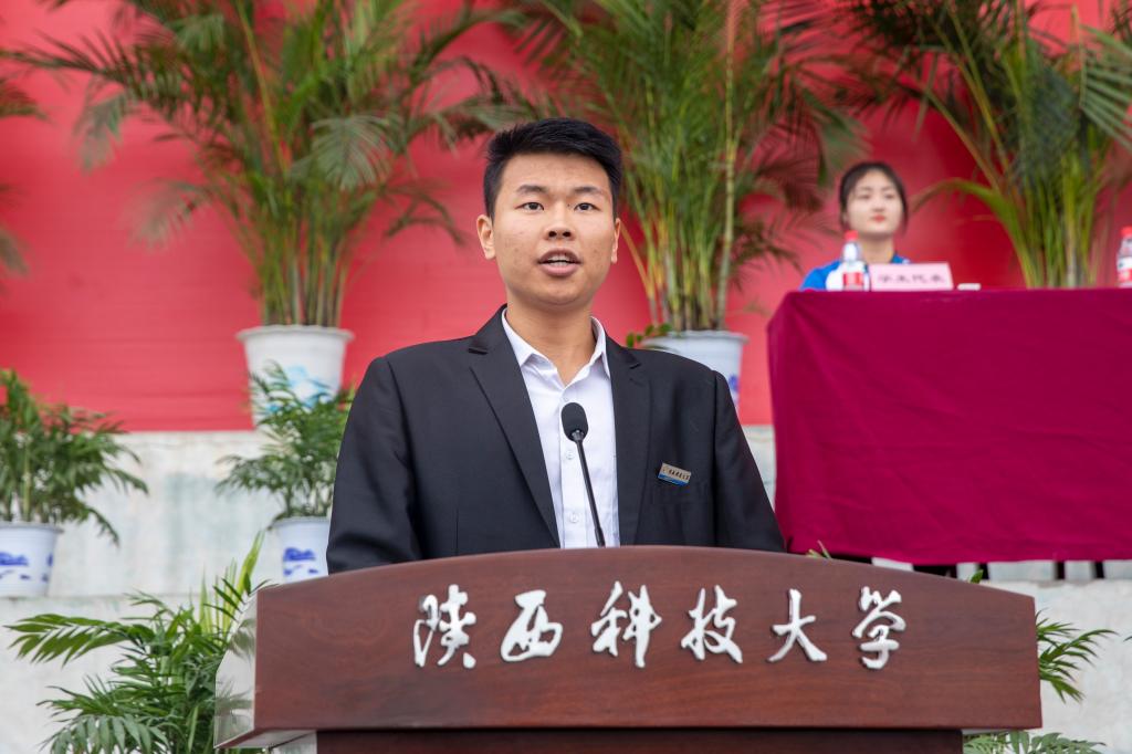 环境科学与工程学院郭军康教授作为教师代表在发言中表达了对新生们的期望与祝福。机电工程学院徐研同学作为在校生代表、食品与生物工程学院高娴雅同学作为新生代表相继作了发言。