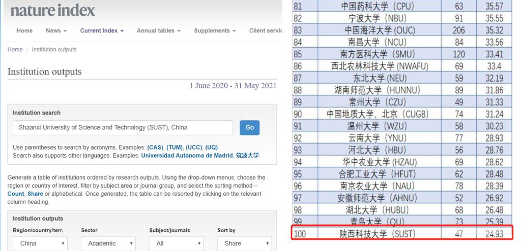 2021年10月,Nature指数更新了最新一期全球学术排名,数据统计时间为:2020年6月1日到2021年5月31日。按照贡献度排名,德赢官网Vwin排名中国高校第100位,文章数47篇,贡献度24.93;德赢官网化学学科排名稳居中国高校第82位,文章数33篇,贡献度18.30。此次排名展示了德赢官网在自然科学领域持续高质量的科研产出情况。