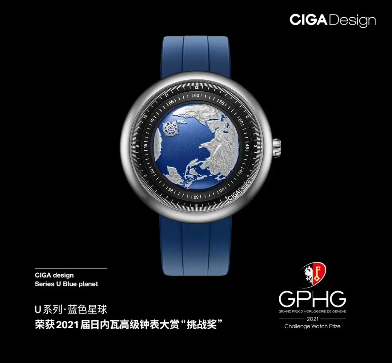 玺佳·蓝色星球腕表是对后疫情时代人类与地球关系的反思,以人文环保为设计理念,以蓝色星球为创意主题,融入陆地、山脉、海洋等自然元素,真实还原地球原貌,在方寸之间唤醒大众对地球环境及自然万物的守护和尊重,以非凡创意理念和独特机芯技术诠释极致腕表。是中国品牌的真正惊喜,代表了中国原创设计品牌的成熟有度。CIGA Design玺佳品牌,坚持自主原创产品研发设计,以独特的设计语言和品牌调性诠释了独特的设计理念和工匠精神,秉承“品牌化、高端化、国际化”的价值主张,开创了工业设计行业的新模式。