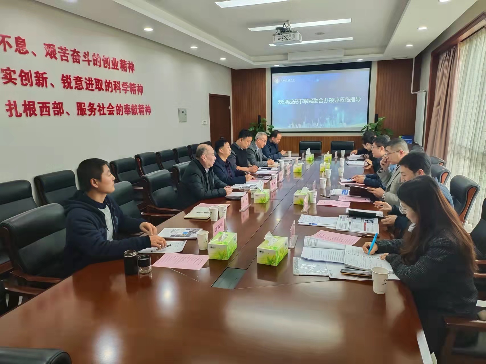 11月26日上午,西安市委军民融合办公室副主任岳智宏、发展服务中心主任赵瑞春、发展服务中心副主任商敖一行7人来德赢官网考察军民融合项目,与机电工程学院、电子信息与人工智能学院相关专业教师开展座谈。校长李志健、副校长黄剑锋出席座谈会。座谈会由科技处处长杨军主持。