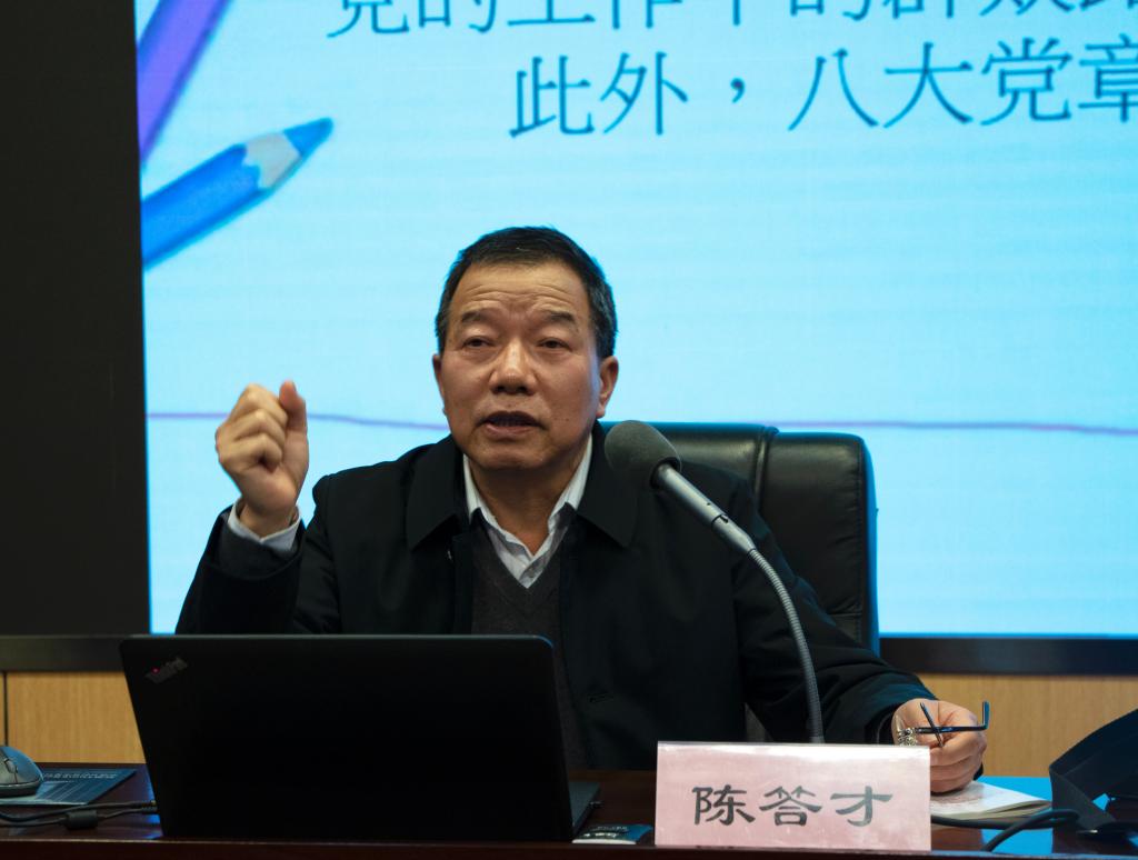 陈答才从历史大视野着眼,从中国共产党是善于总结历史经验的政党、中国共产党三次以“历史决议” 形式总结经验、“第三个决议”是对党的百年历史最新最全面的总结、“第三个决议”是今后相当长时期的思想指针和行动纲领等四个方面,对党的十九届六中全会通过的《关于党的百年奋斗重大成就和历史经验的决议》做了深入浅出的阐述。他通过分析《<共产党人>发刊词》、中共七大政治报告、《关于修改党章的报告》,中共八大《关于修改党的章程的报告》等权威文本,论证了中国共产党是一个善于总结历史经验的政党。他总结了“第三个决议”的四个特点:决议是在党百年华诞的重要时刻刚刚通过的,是对党的百年历史最新的总结;决议总结了党整个百年历史经验,是对党的百年历史最全面的总结;决议突出了十八大以来“开创中国特色社会主义新时代”;决议提出了许多新判断、新要求、新理论。宣讲最后,他就如何学习贯彻好“第三个决议”提出,我们应将学习“第三个决议”与学习前两个决议结合起来,在坚持正确党史观上站稳立场;应原原本本学习“第三个决议”,在把握精神实质上做到真学真懂、学深学透;初心如磐、使命在肩,应在推进中华民族伟大复兴的新征程上自觉弘扬与践行伟大建党精神;应以问题为导向,以人民为中心,在解决人民群众急难愁盼问题的实际工作中狠抓落实。