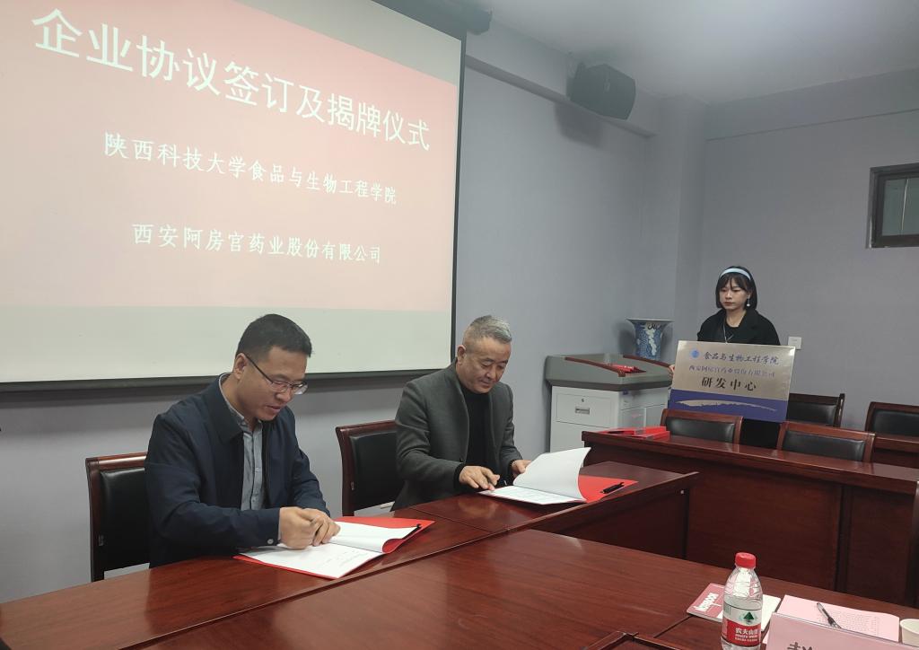 食品学院党委书记訾荣禄主持了校企签约及揭牌仪式,咸阳泰鑫药业有限公司、西安阿房宫药业股份有限公司、陕西天行健生物化工技术有限公司、西安正浩生物制药有限公司等多家企业纷纷就生物医药学科在疫情背景下面临的机遇与挑战与参会师生进行了热烈的讨论。