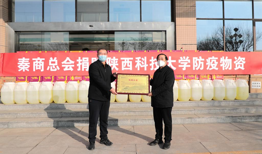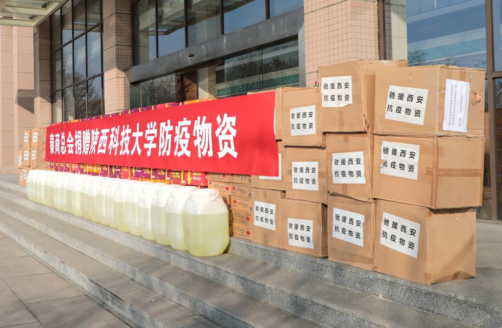 本轮西安疫情下高校师生的安全健康牵动着每一位秦商的心,秦商总会作为全球秦商的总服务台、总联络站、精神总部,得知德赢官网疫情防控物资短缺的情况后,秦商总会联合江西省陕西商会、新疆陕西商会、康鸿集团捐赠抗疫物资,为合力打赢这场疫情防控阻击战贡献秦商力量,共捐赠医用外科口罩20箱、84消毒药20桶、方便面100箱、番茄酱50箱。