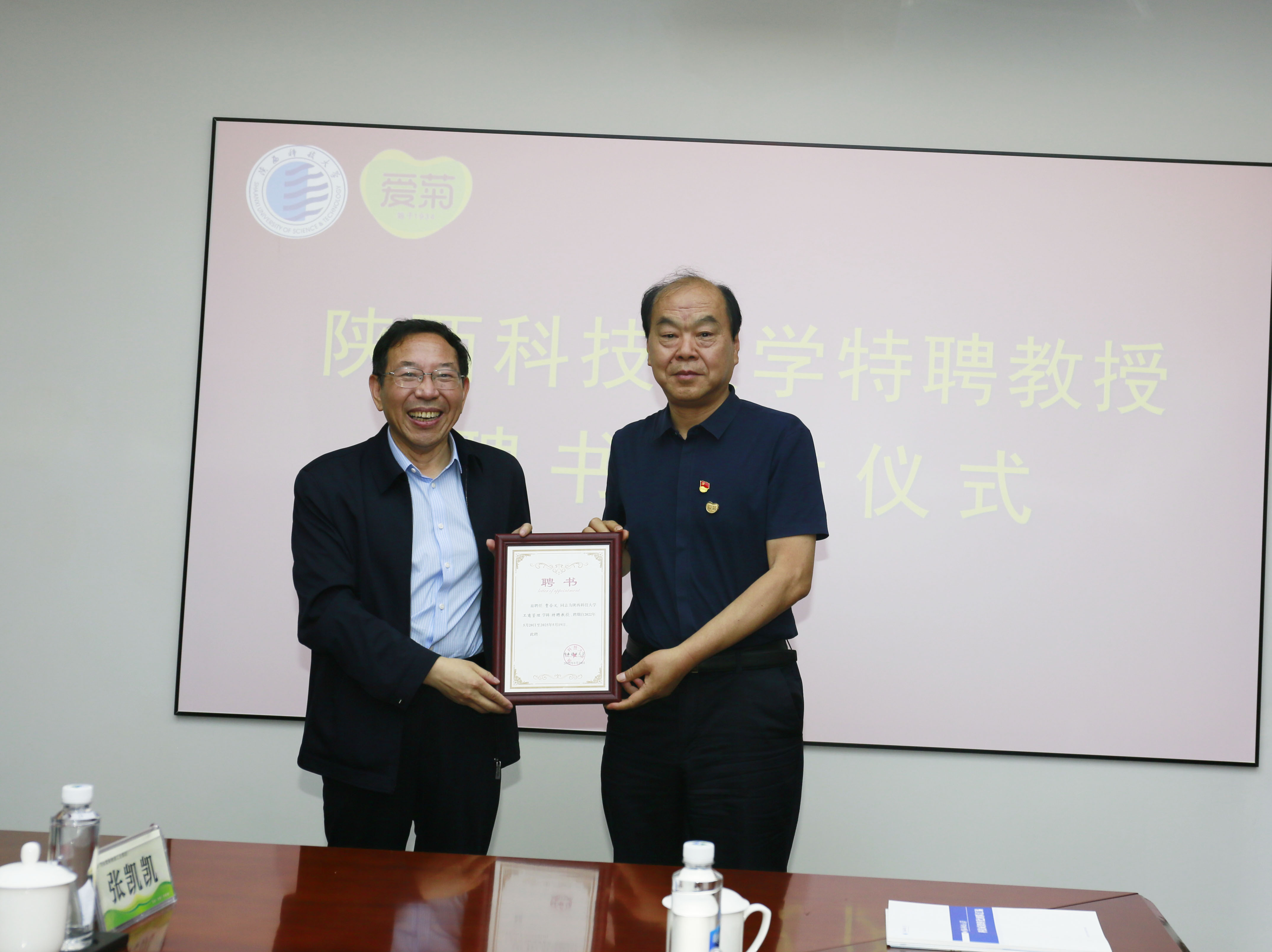 学校聘任贾和义为特聘教授,姚书志为贾合义颁发聘书。