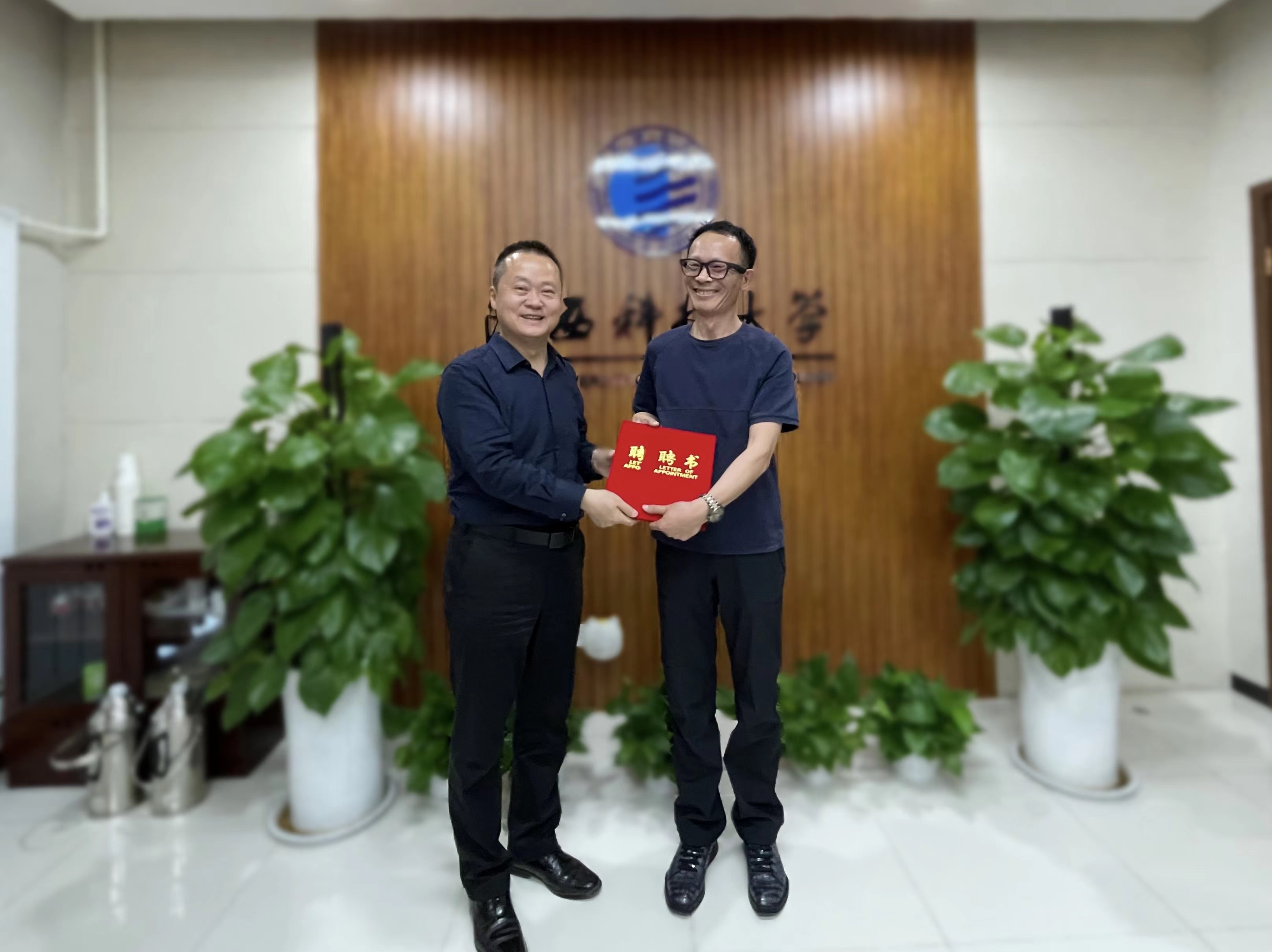 李学军为刘家兵颁发基金会、校友会理事聘书