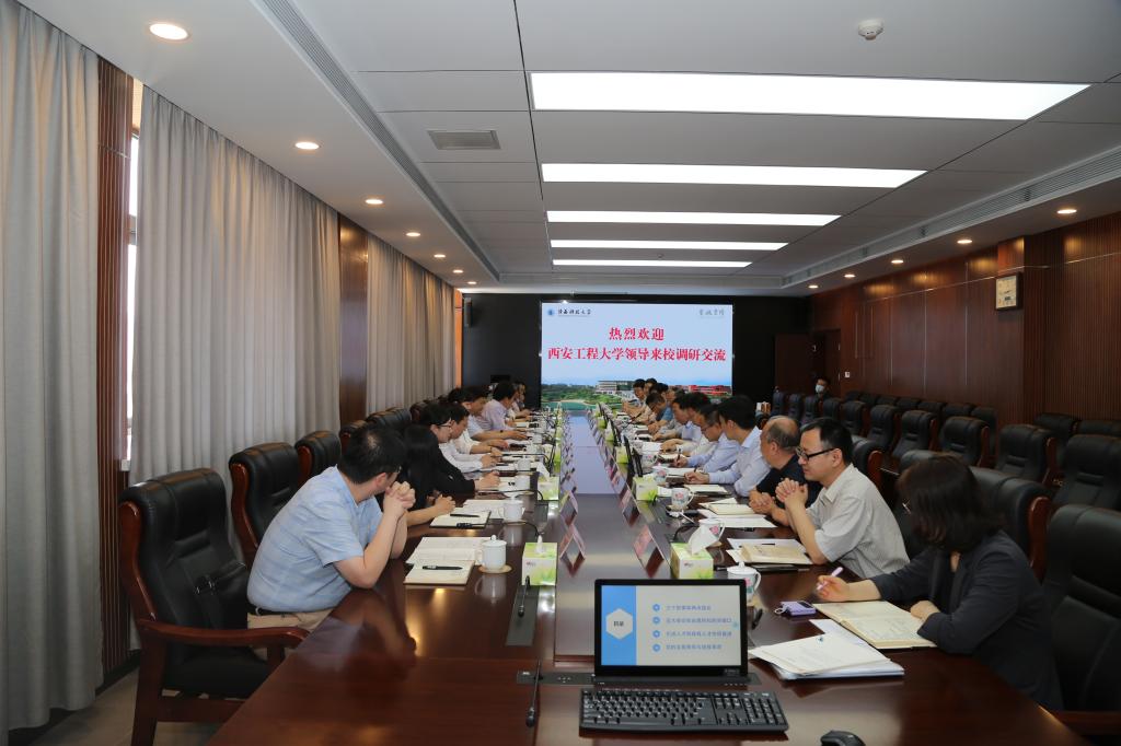 5月24日,西安工程大学党委书记马万清、校长王海燕一行来德赢官网调研交流。德赢官网党委书记姚书志出席座谈会并讲话,校长李志健主持座谈会,副校长蒲永平出席座谈会。