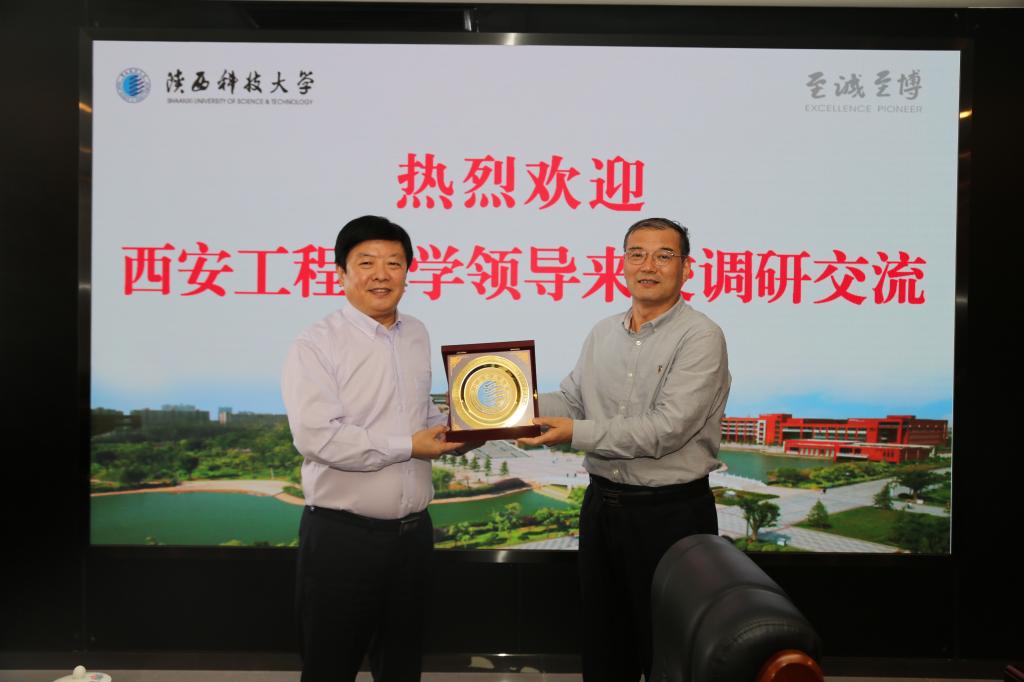 王海燕回顾了自己在陕科大的任职经历,表示在离开学校后也一直密切关注陕科大的发展。在介绍了西安工程大学的办学历史、基本情况以及近年来转型发展取得的成绩之后,他希望通过此次调研交流学习陕科大在学科建设、人才培养、教学科研等方面的先进经验和具体做法,进一步加强两校相关职能部门的对接交流,助力西安工程大学发展再上新台阶。