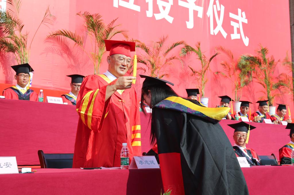 毕业典礼后,学校在文体馆举行了德赢官网Vwin2022届硕士研究生学位授予仪式。李志健为1000余名硕士毕业生一一拨穗、授证并合影留念。