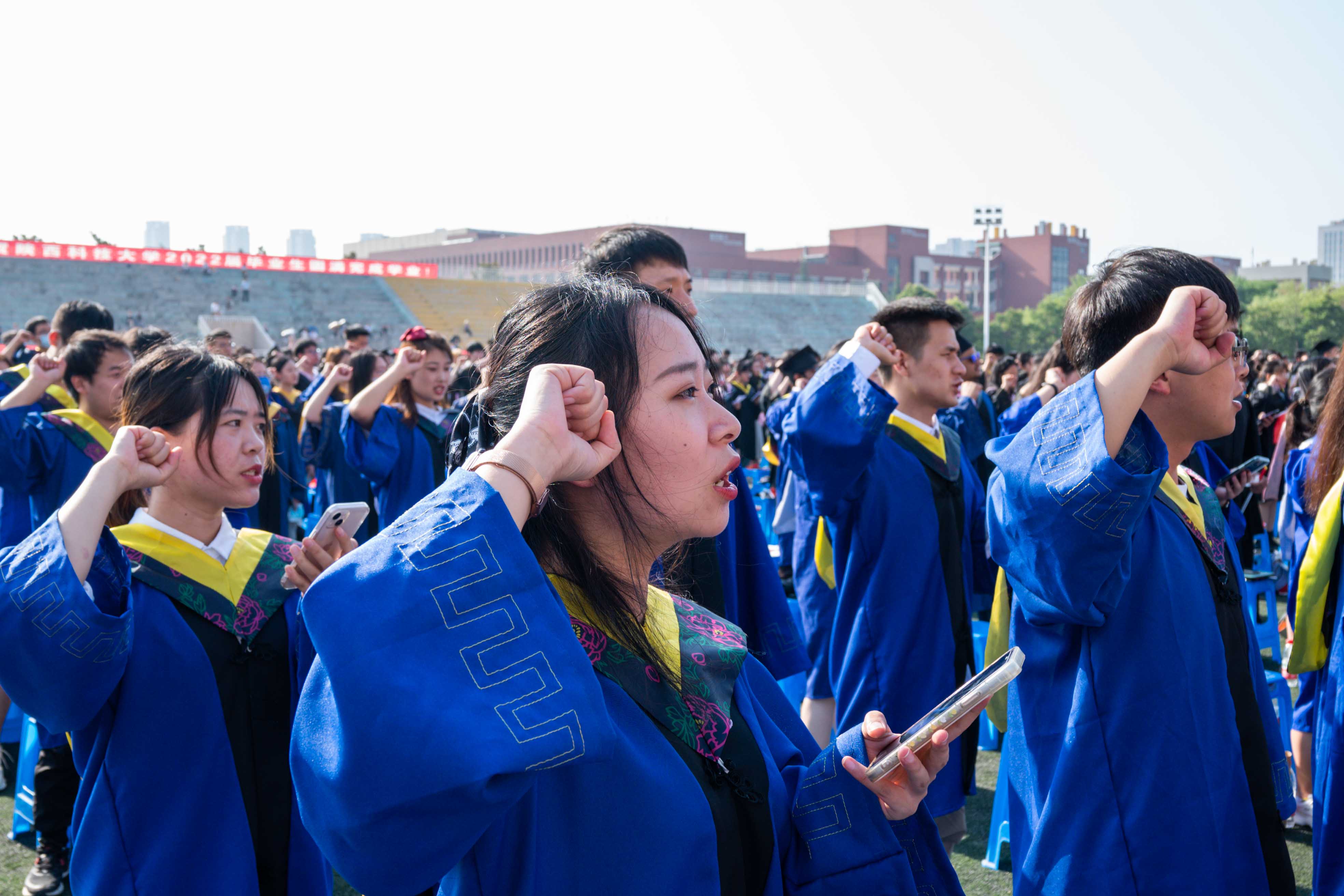 在教师代表和学生合唱团的嘹亮歌声中,校领导、校学位评定委员会全体委员及嘉宾席全体人员起立,满怀期冀目送全体毕业生离场,祝大家就此乘风破浪、扬帆远航!