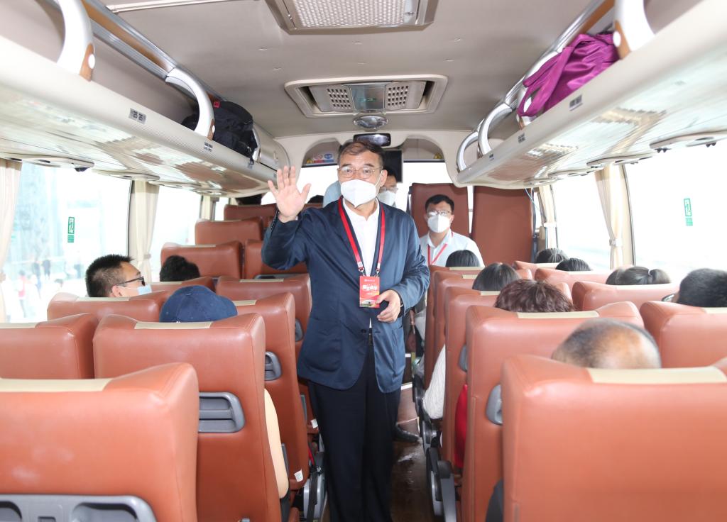 一辆满载新生和家长的德赢官网接站大巴车整装待发,李志健步入车内,与新生及家长亲切交流,“欢迎各位新生来到德赢官网Vwin,请各位家长放心,学校将一如既往地以生为本,不断提高教育教学水平,助力学生成长成才。”
