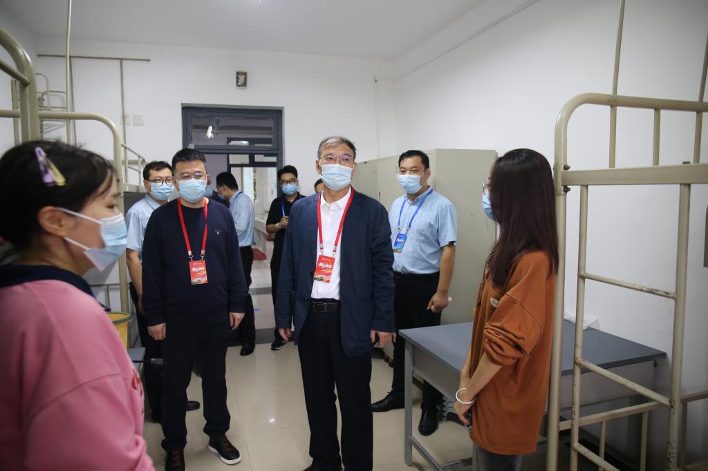 “家是哪里的?”“怎么来学校的?”“刚来学校还习惯吗?”······在学生5公寓宿舍,李志健与新生亲切交谈,他对新同学来到陕科大开始人生新征程表示欢迎,叮嘱同学们有任何困难随时与辅导员、班主任老师沟通联系,他勉励同学们要志存高远、珍惜时光,早日成为社会栋梁之材。李志健一行现场查看了学生公寓自习室、饮水机等设施,他强调,各单位要做好新生的教育、管理、服务工作,在思想、生活、学习上多方面加强关怀,帮助新生尽快适应大学生活。