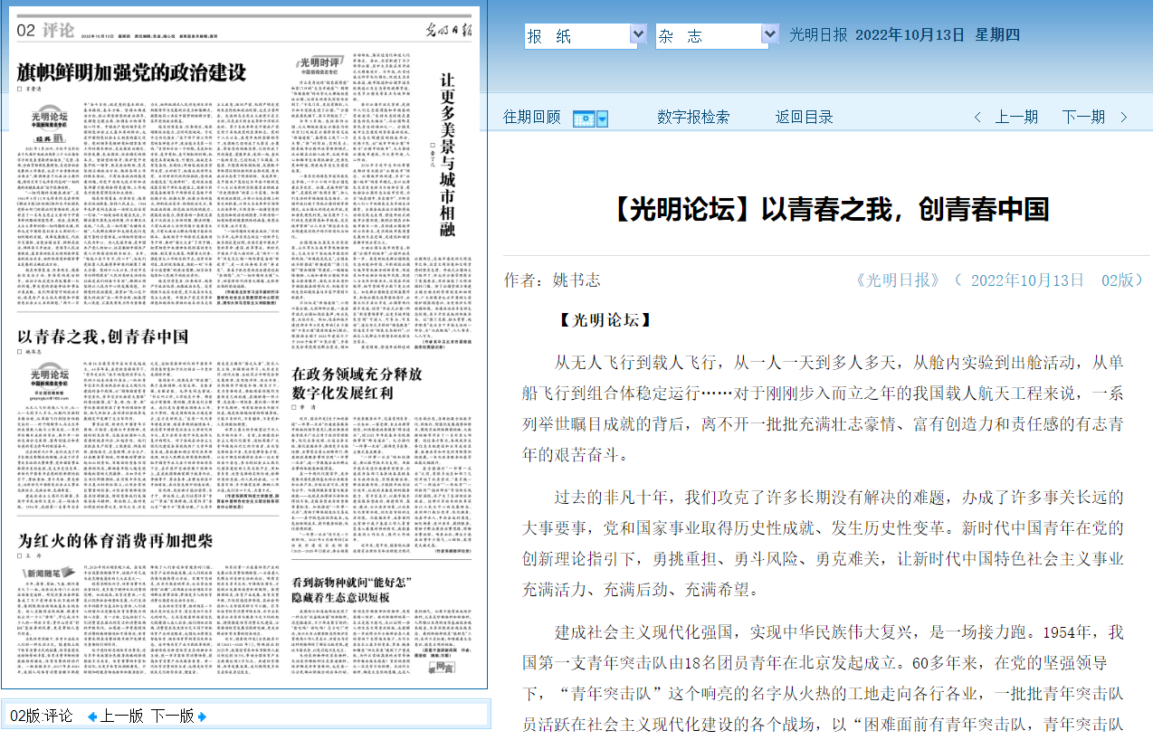 中国新闻网:【光明论坛】以青春之我,创青春中国