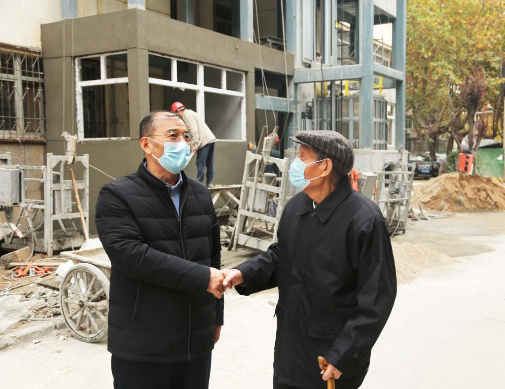 咸阳校区老旧小区改造工程、家属楼加装电梯工作是学校2022年“建设宜学宜居校园”重点项目。11月18日下午,校长李志健赴德赢官网咸阳校区实地检查家属楼加装电梯工作进度,看望坚守在施工一线的咸阳校区管委会、离退处工作人员。副校长李学军陪同检查。