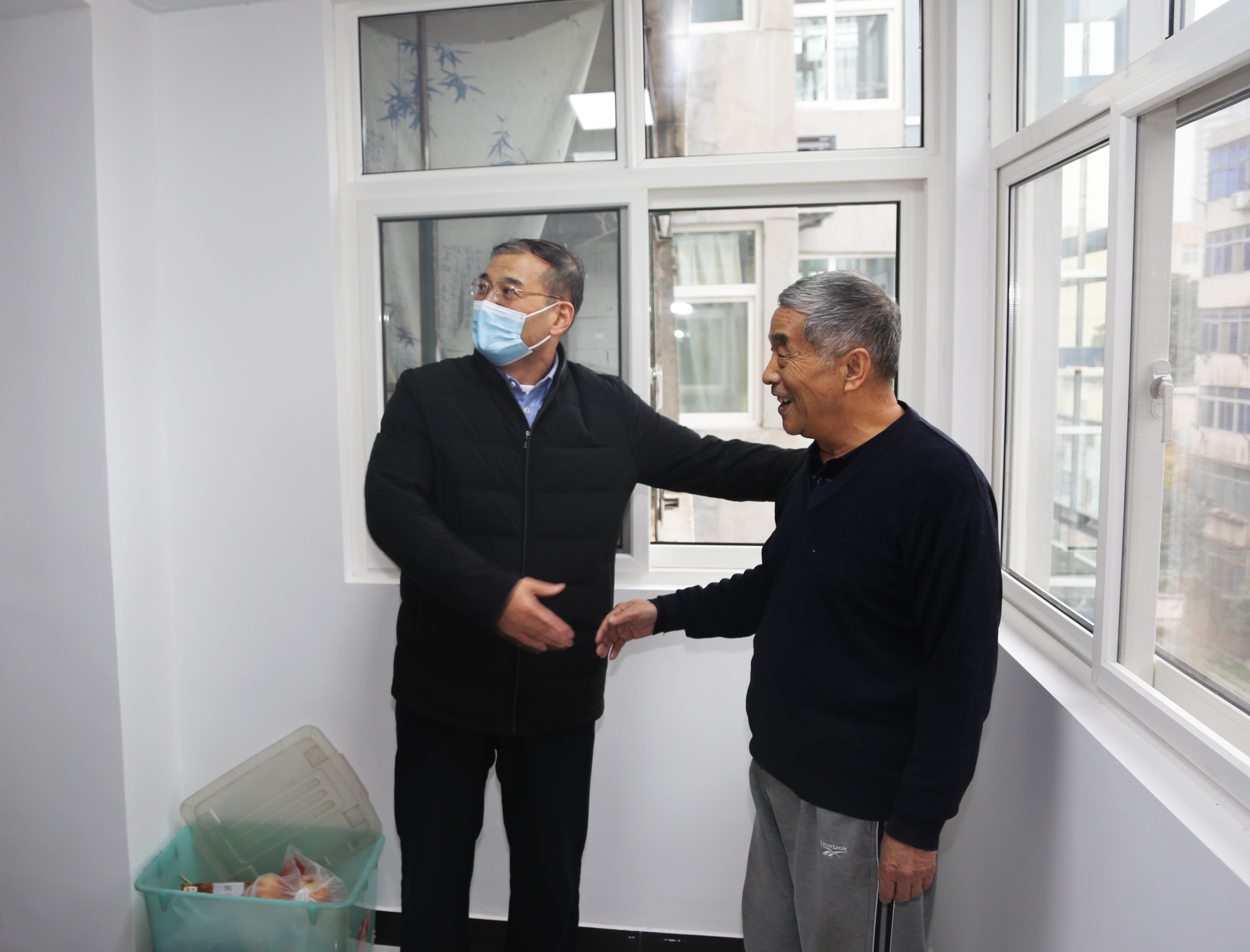 李志健一行到加装电梯的58个单元逐一检查。途中详细询问咸阳校区管委会、基建处项目开展具体情况,了解存在问题和后续进度安排等推进措施。到已完工的楼栋检查时,乘坐加装电梯深入德赢官网退休教师王军效、王宏选家中查看加装电梯后的住宅改造情况,调研群众意见。王军效热情地握住李志健的手表示:“家属楼加装电梯后,一些腿脚不方便的老同志可以经常下楼晒太阳、散步了,大家的生活幸福指数得到很大的提升。”王宏选表示:“加装电梯房间改造后,住宅面积增加了、房间更加宽敞明亮了。”