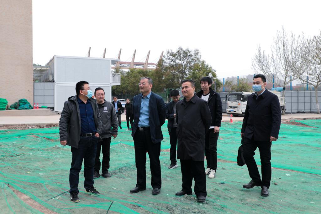 在文体馆门前广场,针对即将启动的文体馆屋面防水维修及“至博”文化长廊工程项目,李志健指出,一要高度重视高空施工安全,二要加强部门之间沟通协调,加速推进项目实施。