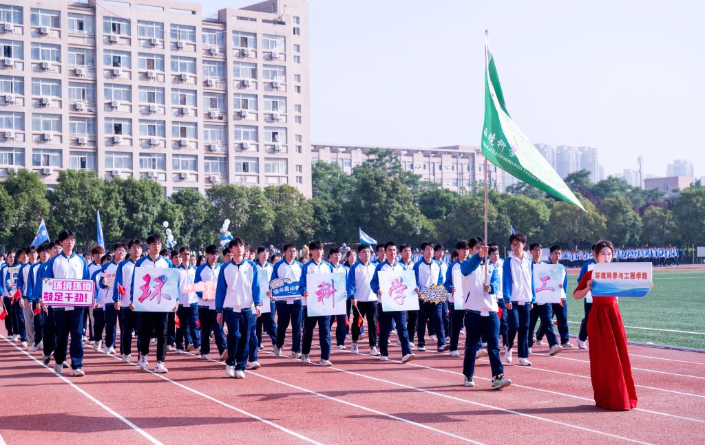 上午8时30分,在慷慨激昂的《运动员进行曲》中,三旗仪仗队迈着铿锵有力的步伐经过主席台接受检阅,英姿飒爽,整齐划一;裁判员方队紧随其后,精神抖擞,意气风发;各参赛代表队方阵依次入场,整齐的队伍、嘹亮的口号、充满创意的入场方式,展现了陕科大师生蓬勃向上、锐意进取的精神风貌。