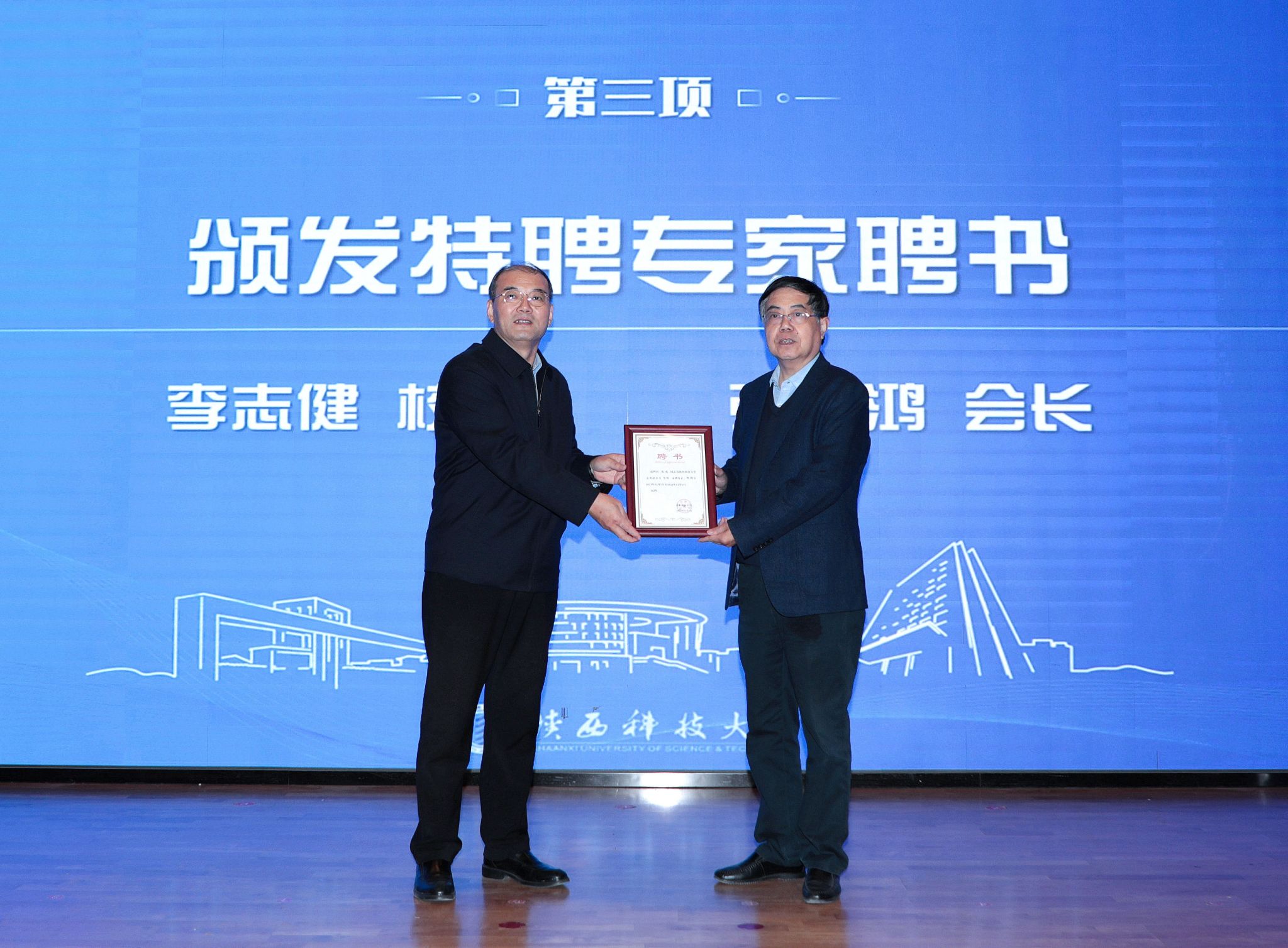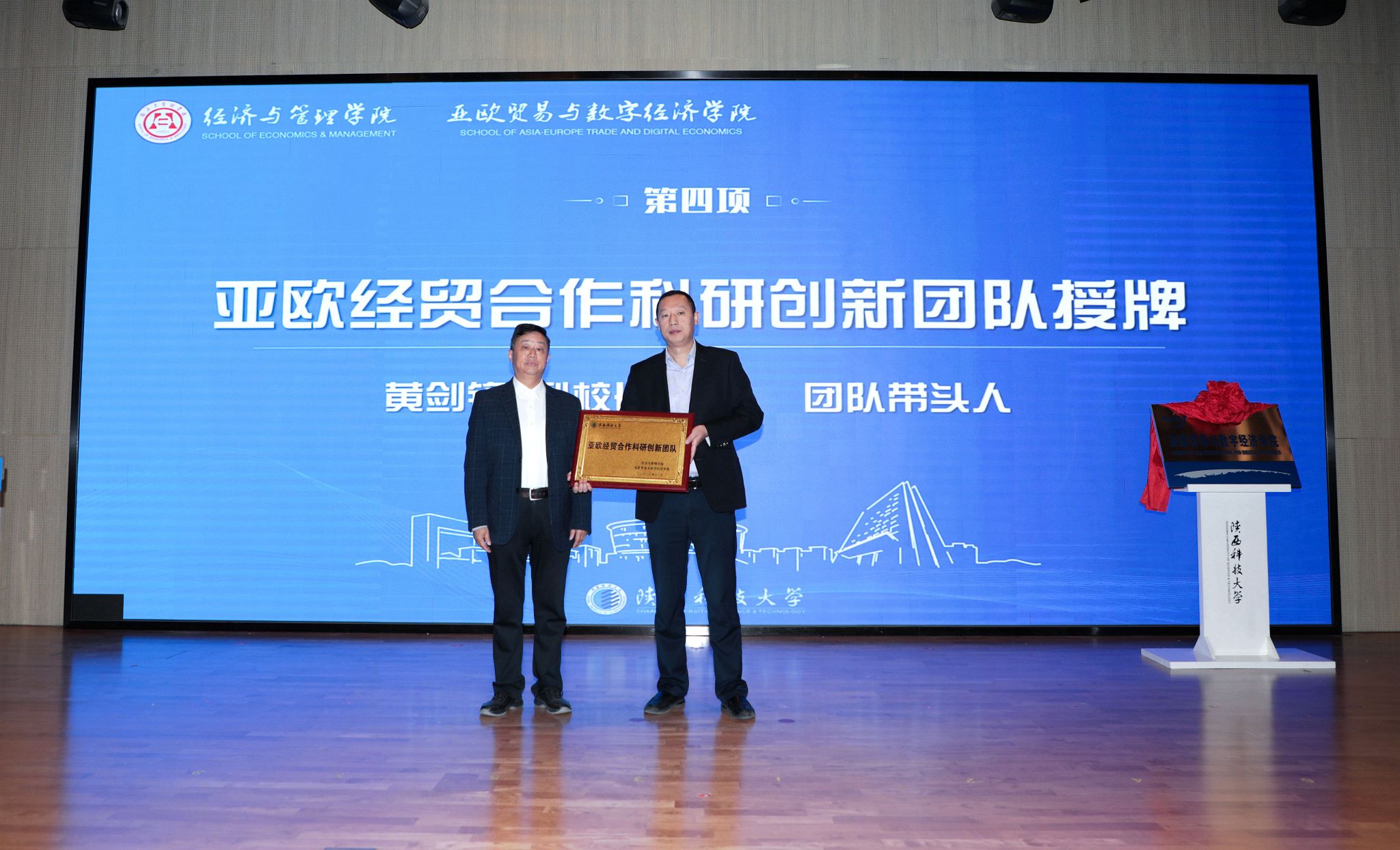 揭牌仪式上,李志健为张鸿颁发特聘专家聘书,黄剑锋为亚欧经贸合作科研创新团队授牌。