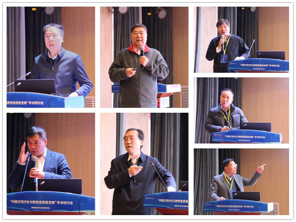 联合国教科文组织国际工程教育中心顾问委员瞿振元,长三角教育现代化监测评估中⼼执行主任张珏,中国人民大学教育学院院长周光礼,西北师范大学原党委书记张俊宗,陕西省社科院原党委书记、院长司晓宏,武汉理工大学研究生院院长梁传杰分别做了题为《教育、科技、人才一体统筹推进与高等教育变革》《长三角教育现代化监测评估研究与实施》《教育强国建设与教育学科发展》《“八个更加注重”:中国式教育理念》《新型城镇化背景下乡村教育振兴的样态与路径》《研究生教育发展方式:内涵特征、样态分析与转型路径》的主旨报告。