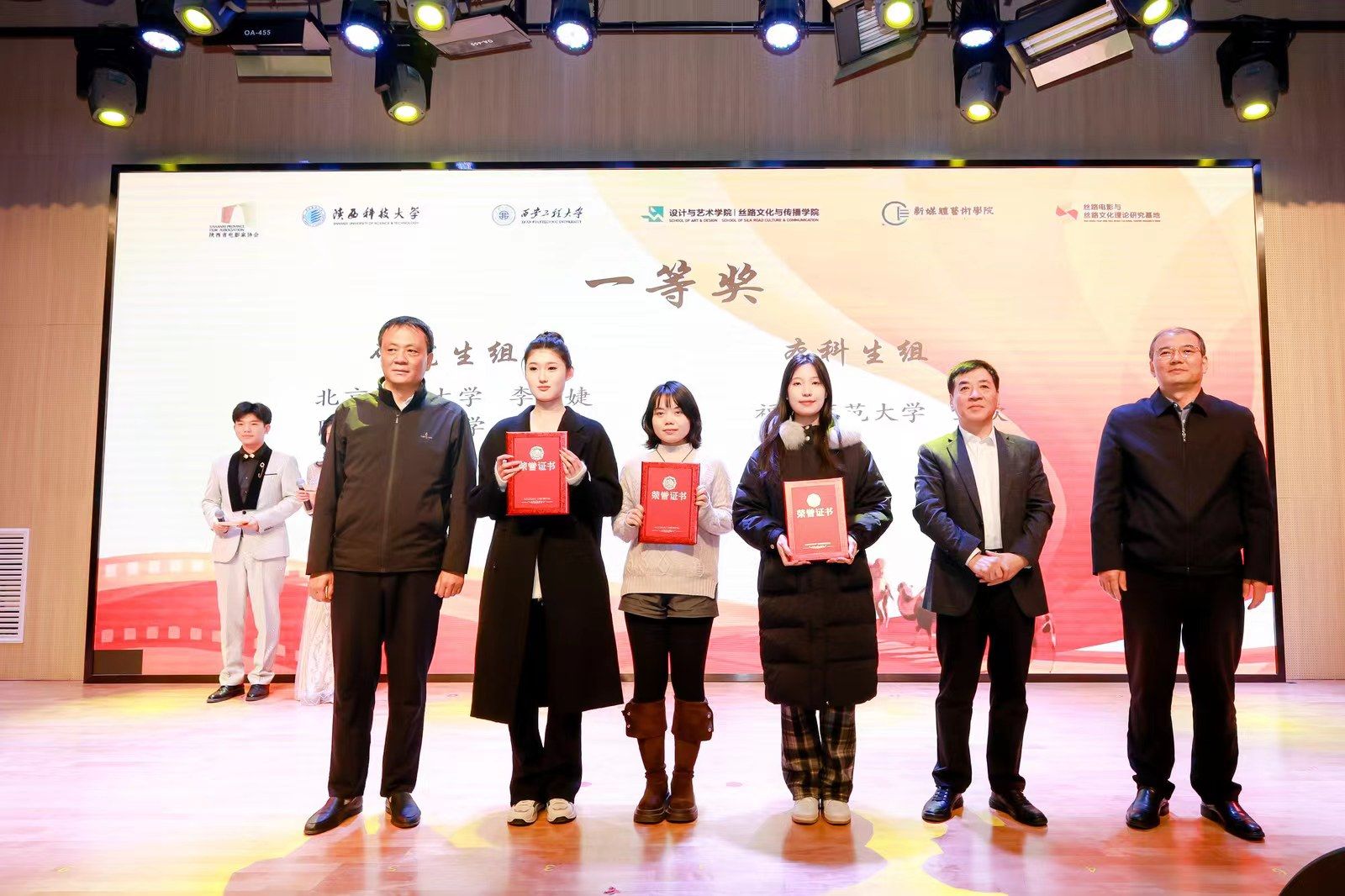12月29日下午,由陕西省电影局指导,中国高等院校影视学会影视评论专业委员会、德赢官网Vwin、西安工程大学、陕西省电影家协会、陕西省电影行业协会、德赢官网Vwin设计与艺术学院(丝路文化与传播学院)、西安工程大学新媒体艺术学院、丝路电影与丝路文化理论研究基地、中国电影地缘文化研究基地、中国西部电影研究基地联合承办的“首届‘丝路杯’大学生影评大赛”颁奖典礼在德赢官网人文楼小剧场举行。中共陕西省委宣传部二级巡视员张宏科、陕西省电影家协会主席黄献松、德赢官网Vwin校长李志健、德赢官网Vwin党委副书记王道安、陕西省电影家协会秘书长王珍、中共陕西省委宣传部电影处副处长李岩等领导嘉宾出席典礼,来自西北大学、长安大学、西安工程大学、西安外国语大学、西安财经大学、西安工业大学、西北大学现代学院、西安工商学院等省内兄弟院校相关学院的领导、德赢官网党委宣传部、教务处、设艺学院等相关部门、学院领导参加颁奖典礼。