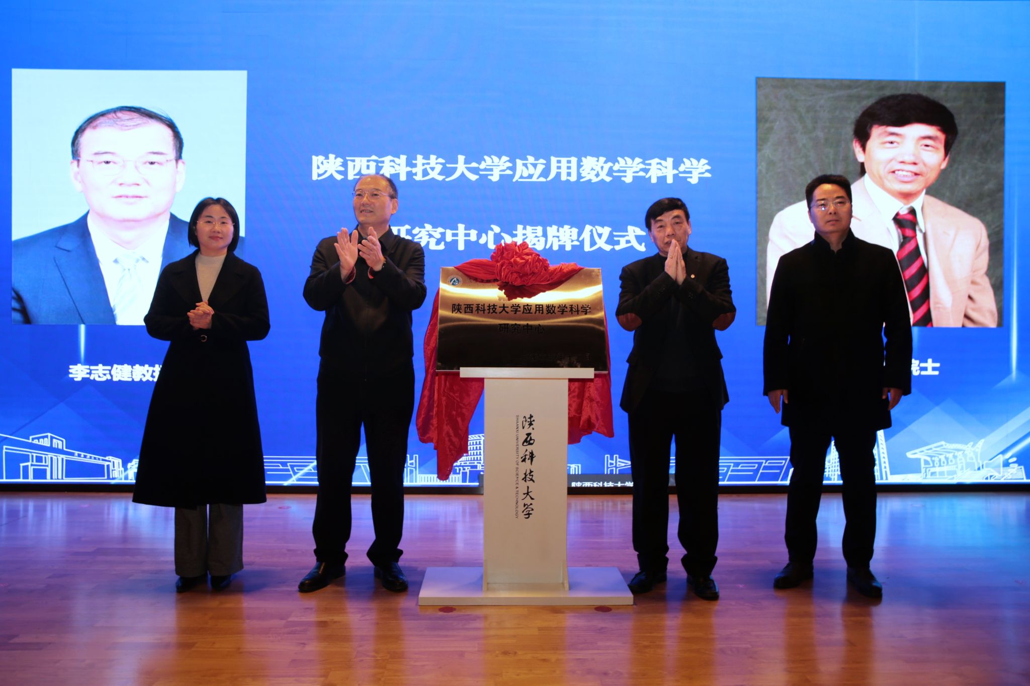 李志健(左二)和陈掌星(右二)为“德赢官网Vwin应用数学科学研究中心”揭牌