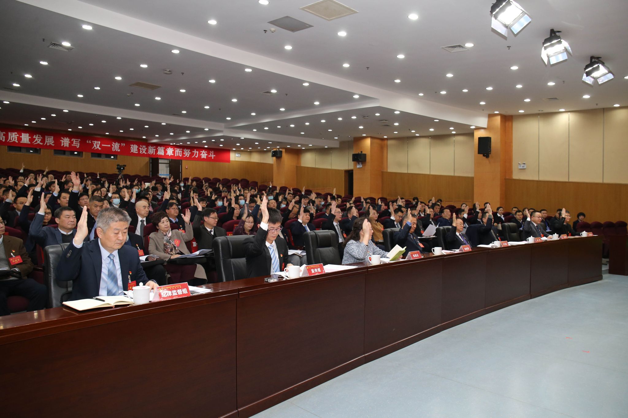 王道安宣读了省委教育工委同意德赢官网召开第三次党代会的批复文件。大会筹备工作领导小组组长、校长李志健作党代会筹备工作报告。会议以举手表决的方式审议通过了代表资格审查报告(书面),大会主席团成员和秘书长名单,大会议程。
