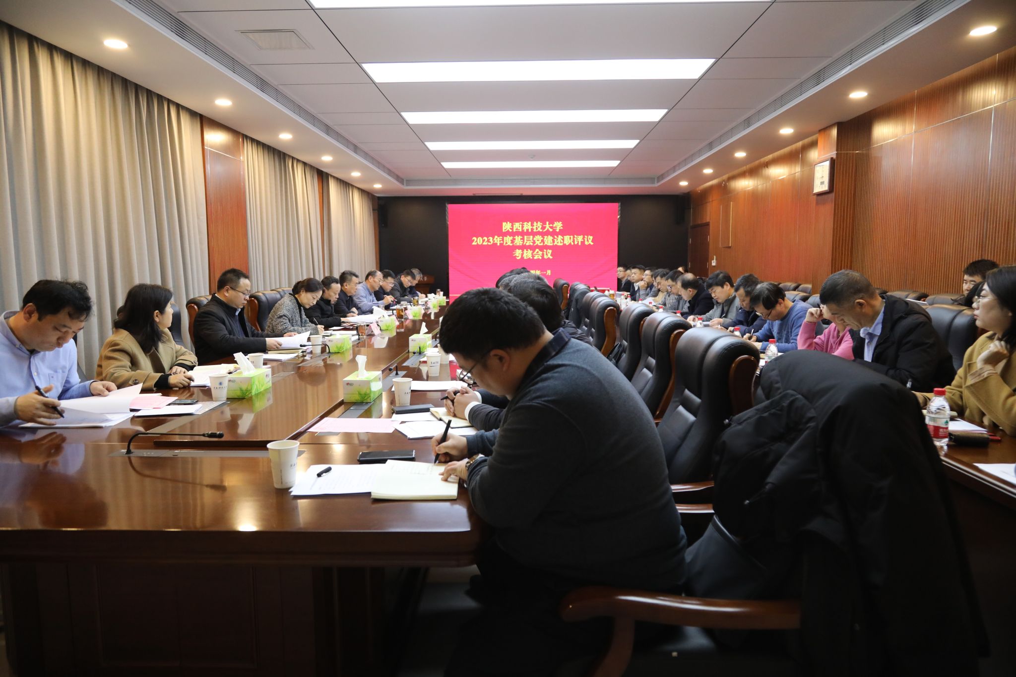 1月15日,学校党委召开2023年度基层党建述职评议考核会议,校党委书记樊建武主持会议并讲话,校长李志健对各单位述职作点评,校党委副书记王道安、郭强,校党委副书记、纪委书记、监察专员罗莹出席会议,学校党群部门负责人、院级党组织书记、党员代表参会。