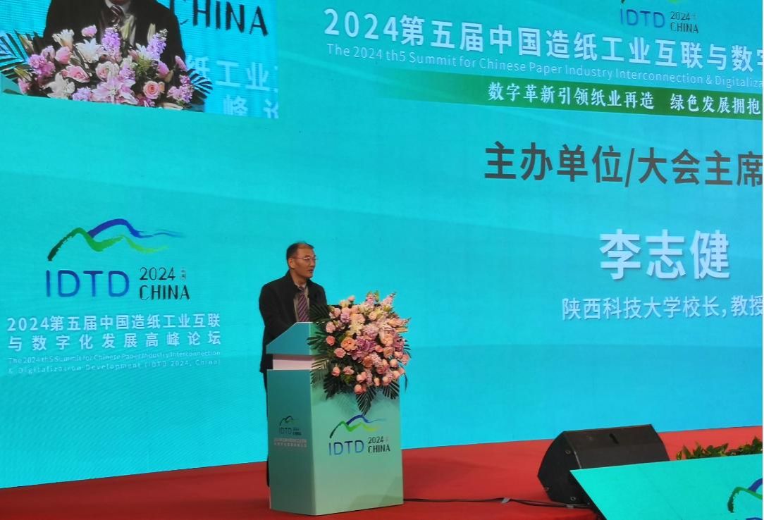 李志健在致辞中介绍了学校发展历程,他指出,学校因轻工而生、因轻工而兴,造纸学科是学校的根脉和主干,与学校发展始终同向同行,近年来,学校围绕“创新轻工、智慧轻工、品质轻工、绿色轻工”等发展需求,不断深化企业为主体、市场为导向、产学研用深度融合的科研服务体系,为轻工行业的发展提供技术支持和人才支撑。他强调,在碳达峰、碳中和战略背景下,如何推动造纸工业向着绿色循环、可持续发展方向深度转型,实现节能降耗、提质增效、精益管理、绿色发展,是推动造纸产业构建现代化产业体系的关键。他表示,学校将同造纸领域高校、科研院所、行业企业一道努力,持续深化人才链、优化教育链、激活创新链、服务产业链,将论坛打造成为业内信息共享、交流研讨、校企合作、科研攻关的务实有效纽带,助力造纸工业实现原料可再生、可循环、可持续,工艺嵌套伴生、清洁化、绿色化,装备自主化、国产化、高端化,过程信息化、数字化、智能化,产品低碳化、丰富化、品质化,共同推动造纸工业成为中国式现代化进程中可持续发展的行业典范。