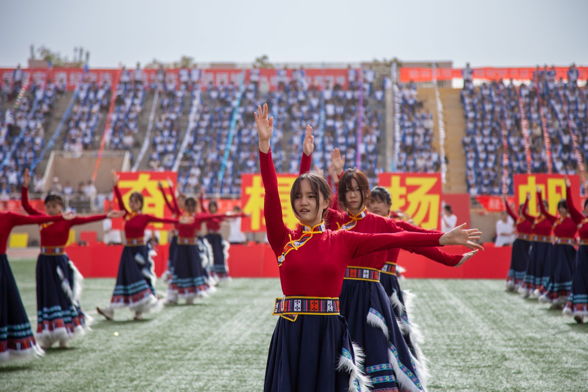 随后,在雄壮的国歌声和校歌声中,五星红旗、校旗和运动会会旗相继冉冉升起。