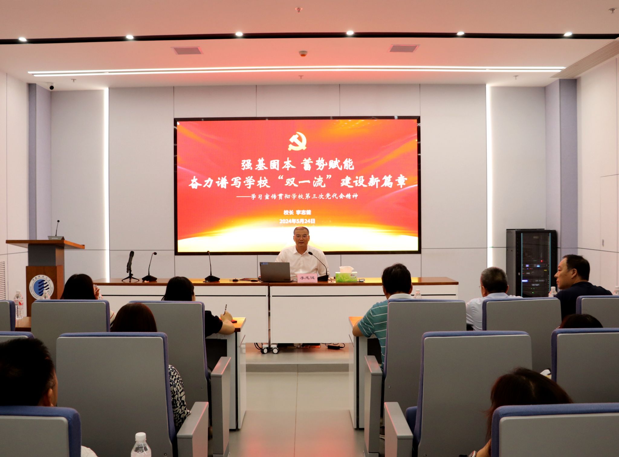 李志健围绕大会主题、第二次党代会以来取得的成就和经验、学校现阶段面临的形势、“复兴期”奋斗目标以及今后五年学校党的建设和事业发展的行动纲领和重点任务等方面进行了深入解读和阐释。他指出,面对国际国内新形势新要求、改革发展新阶段新任务,学校党委坚持“一张蓝图绘到底,一茬接着一茬干”的主基调,对标国家“双一流”建设内涵要义,聚力实施事业发展“十大行动”,深入推进党的建设“六大工程”,推动学校事业发展稳步前行。他强调,各单位要高度重视、精心组织、周密部署、统筹安排,切实做到在全面学习上下功夫、在深化宣传上下功夫、在贯彻落实上下功夫。特别是要采取面对面的宣讲方式,引导全校师生全面把握学校第三次党代会的实质内容,锚定“复兴期”奋斗目标不放松,切实回答好“教育强国、科大何为”的时代答卷。