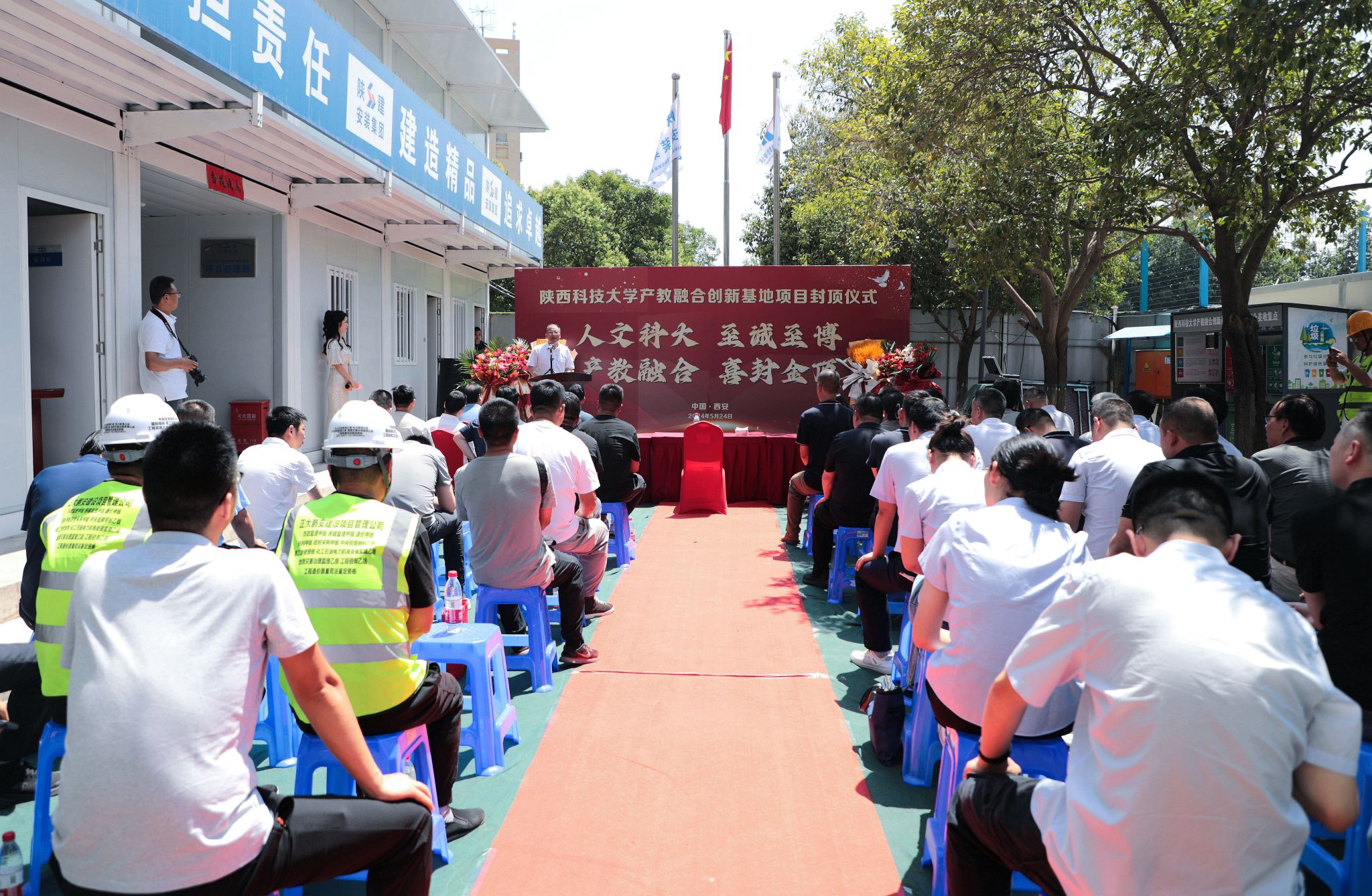 5月24日,德赢官网举行产教融合创新基地项目封顶仪式。校长李志健、西安市未央区相关单位负责人、各参建单位代表及德赢官网相关职能部门负责人出席仪式。与会嘉宾共同为产教融合创新基地项目共筑封顶最后一斗混凝土。