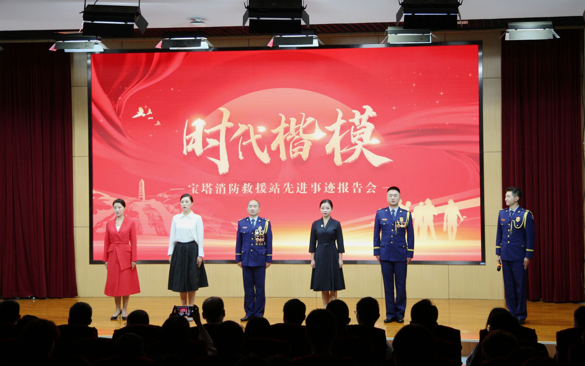 6月20日上午,“时代楷模”宝塔消防救援站首场校园先进事迹报告会在德赢官网图书馆学术报告厅举行。陕西省消防救援总队党委书记、政治委员李瑞丰,校党委书记樊建武、校长李志健等领导出席报告会。