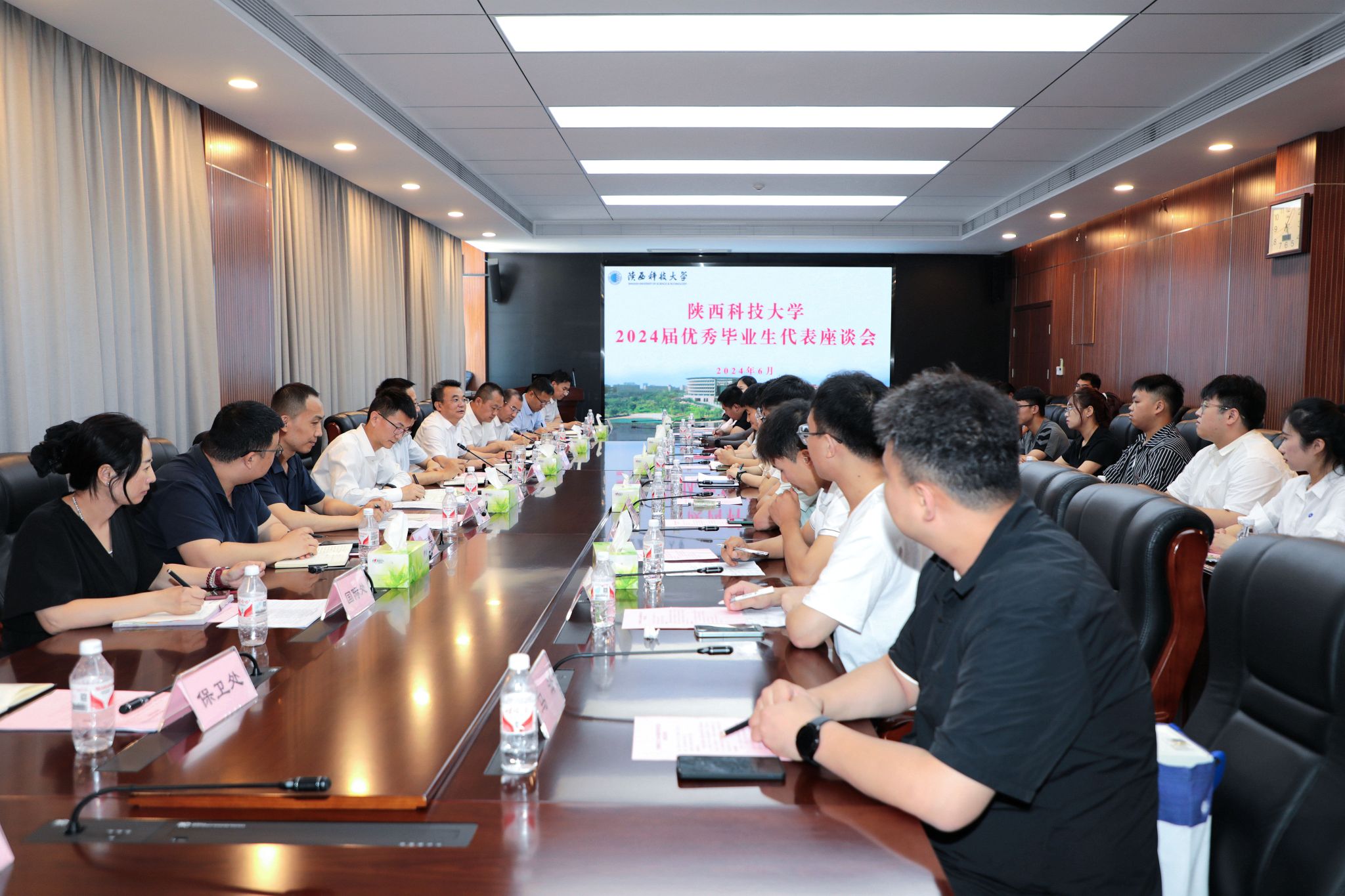 6月21日下午,学校召开2024届毕业生代表座谈会。校党委书记樊建武出席会议并讲话,校党委副书记李学军、副校长蒲永平出席会议。学工部部长(学生处处长、学生就业指导中心主任)李晓主持会议。