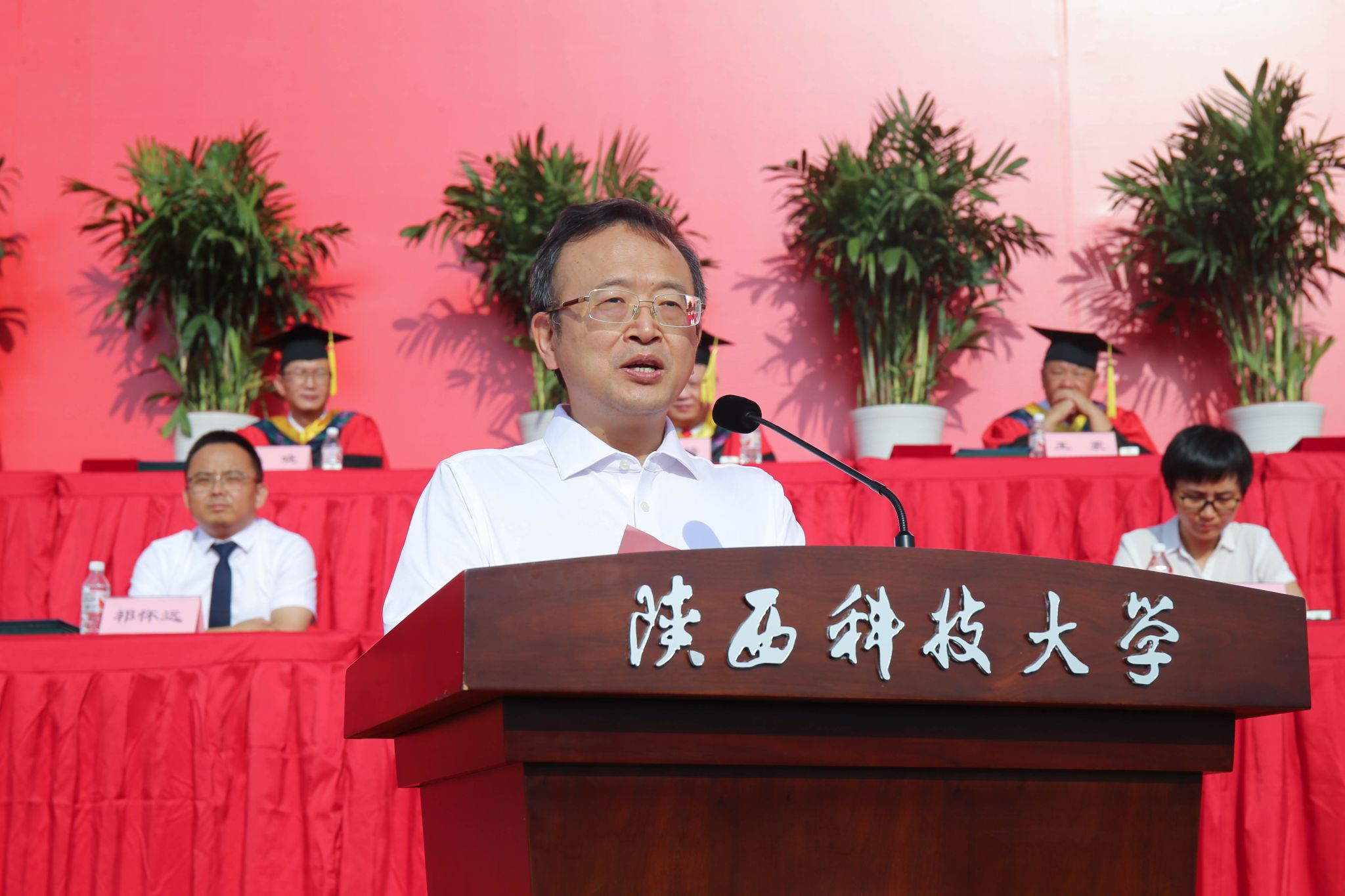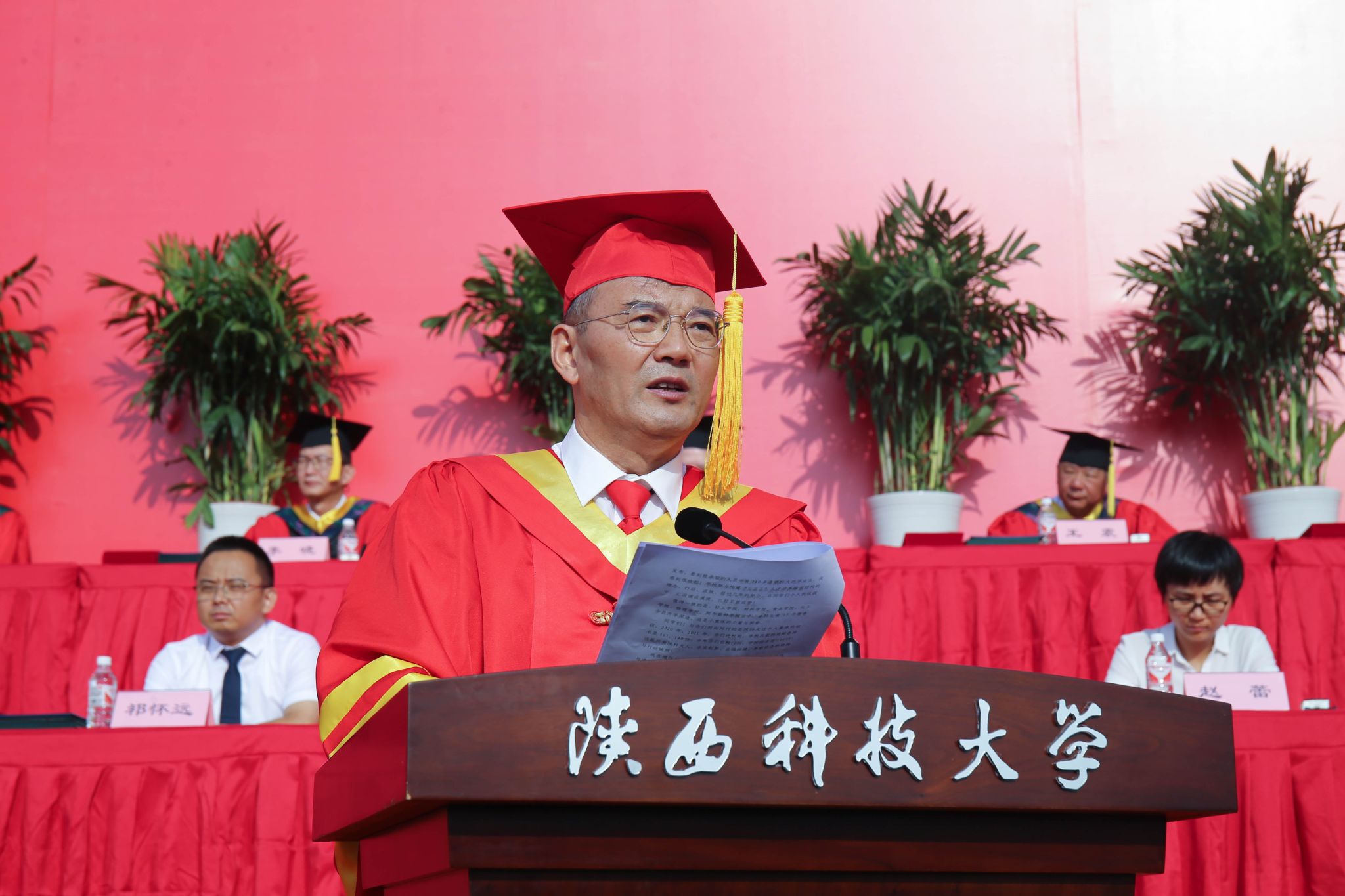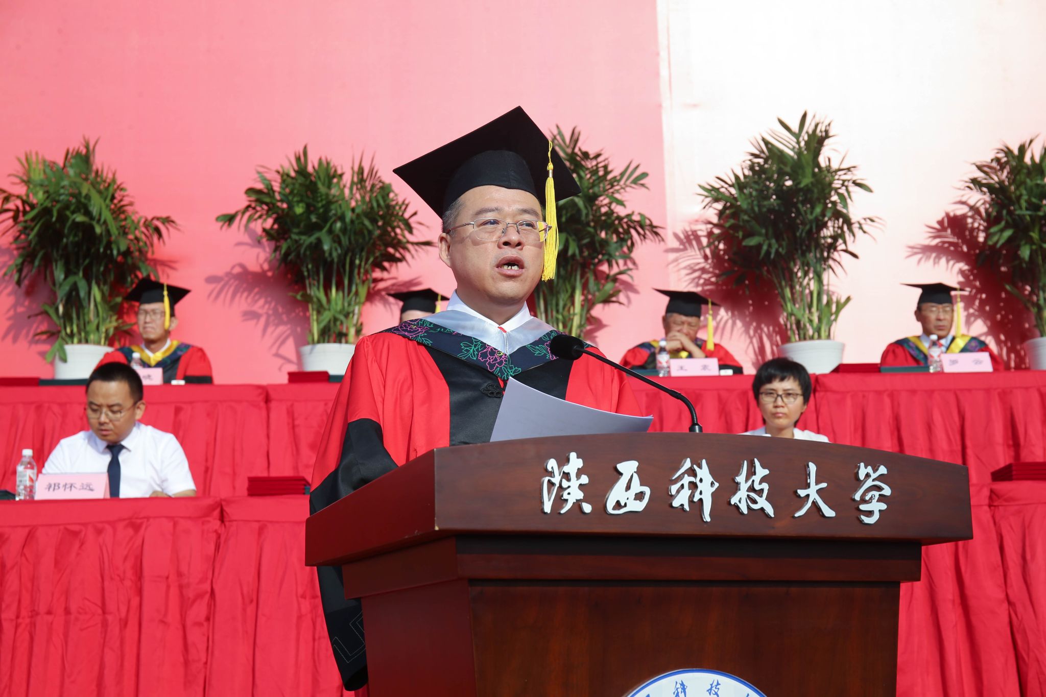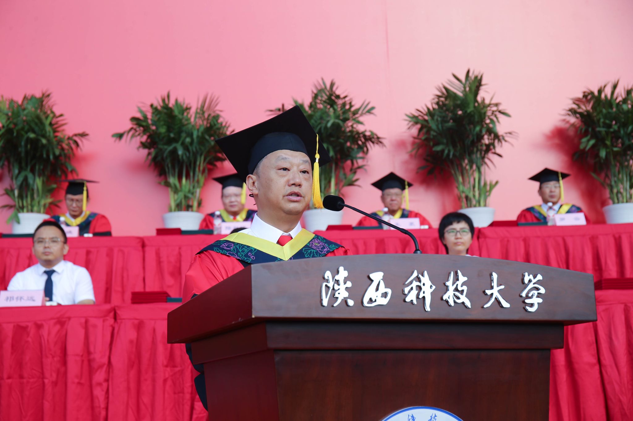 临别之际,校长李志健以“收获、机遇、未来”为题深情寄语毕业生。他饱含深情地回顾了同学们与学校同向同行、砥砺奋斗的成长历程,充分肯定了同学们在学校“三三三”人才培养输出理念的指引下,通过企事业单位就业、学习深造、奔赴基层建功立业、投笔从戎等多种形式勇担重责、成就自我的蝶变成长。他表示,学校软科排名从同学们入校时的161位跃升到今年大家毕业时的124位,这是所有陕科大人求实创新、自强拼搏、奉献社会的精神与行动映照!
