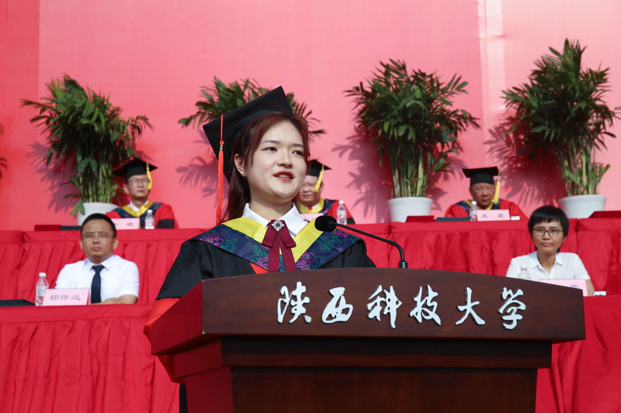 毕业生代表、轻工科学与工程学院2024届博士毕业生项华翠在发言中表达了对母校及师长的感激与惜别之情,分享了自己和学校共同成长的十年历程和满满收获,她对2024届毕业生说,“无论未来你奔向何方,都要尽情地去经历和创造属于自己的一个又一个十年。人生这套试卷从来没有标准答案,让我们在各自的领域不断突破,奋力生长,璀璨生光。”