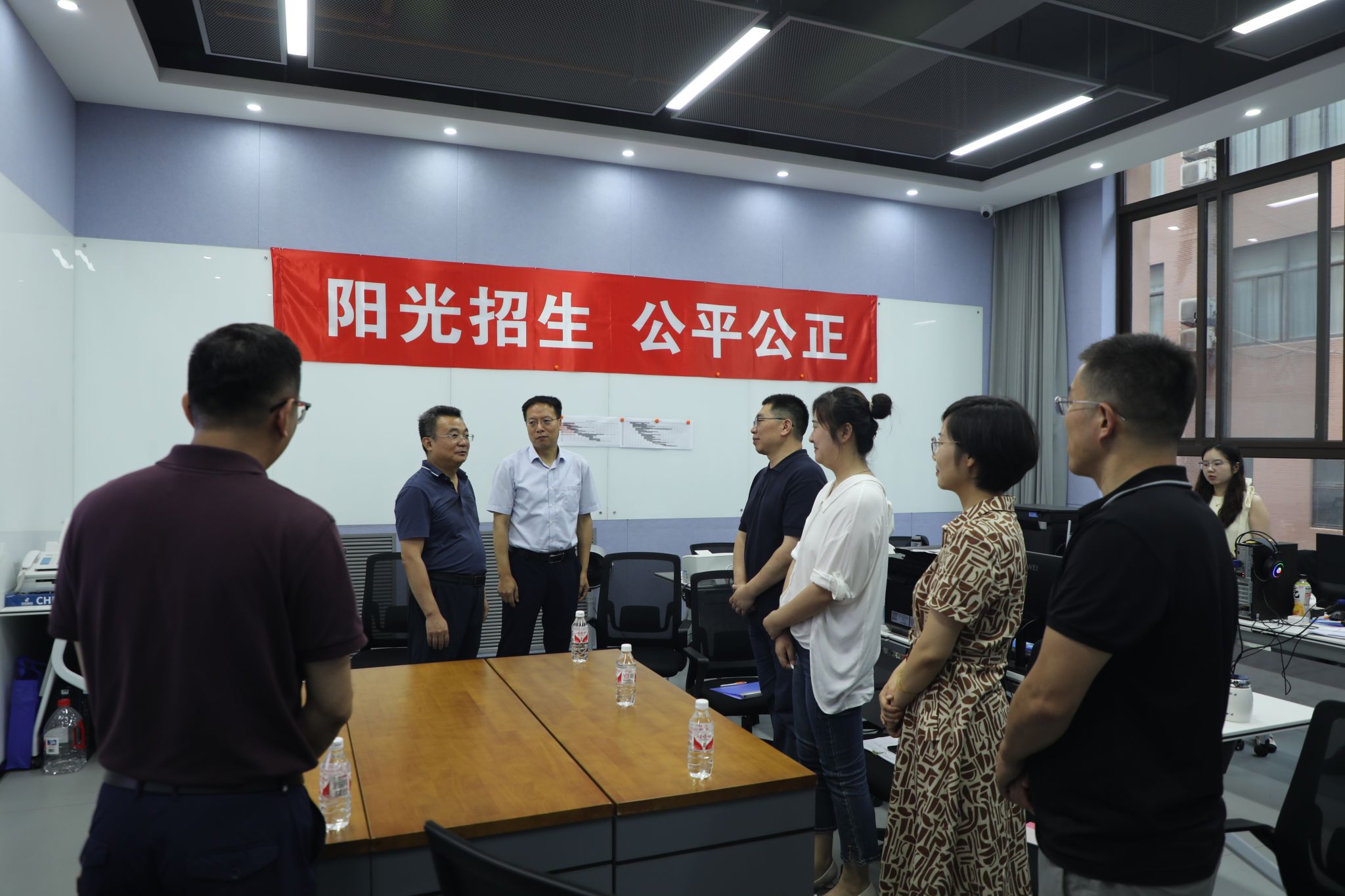 7月16日,樊建武、李志健来到位于鸿鹄广场会议中心的德赢官网招生录取工作现场,亲切慰问了奋战在招生录取一线的工作人员,认真听取了招办负责人对招生录取工作进展情况的汇报,详细了解了招生计划执行、生源质量、录取流程等方面情况,对德赢官网2024年本科招生录取工作进行现场指导。