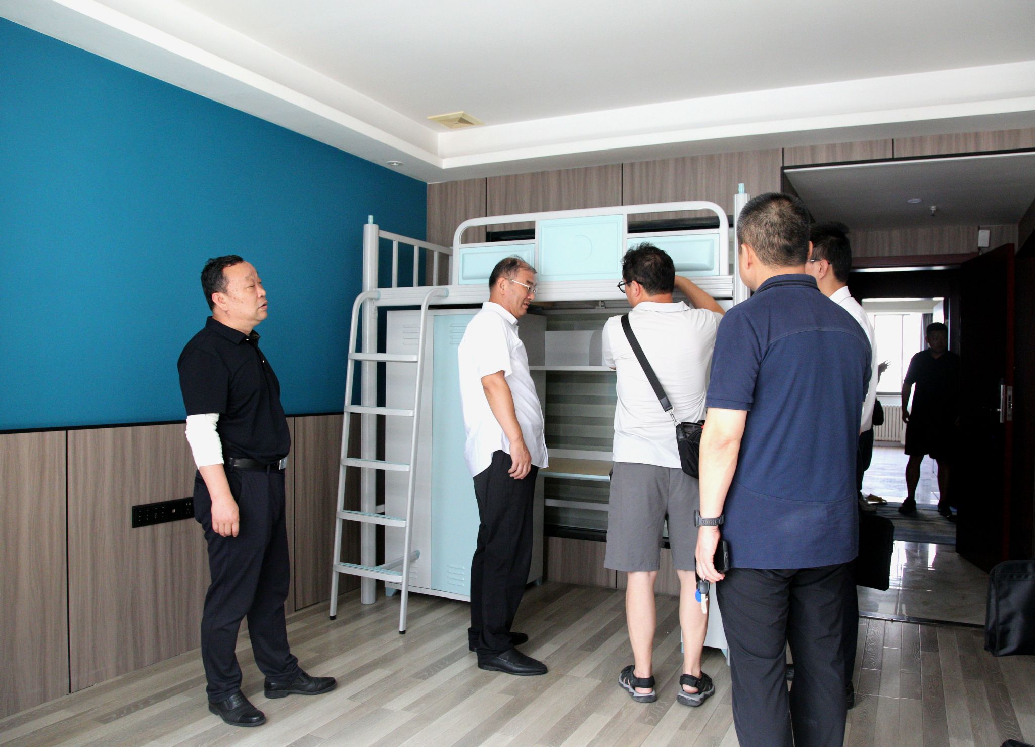 李志健一行分别前往学生十八、十二公寓,仔细查看公寓改造项目的施工情况,详细听取了基建处关于项目改造进展情况的汇报,并对做好下一步工作提出要求。