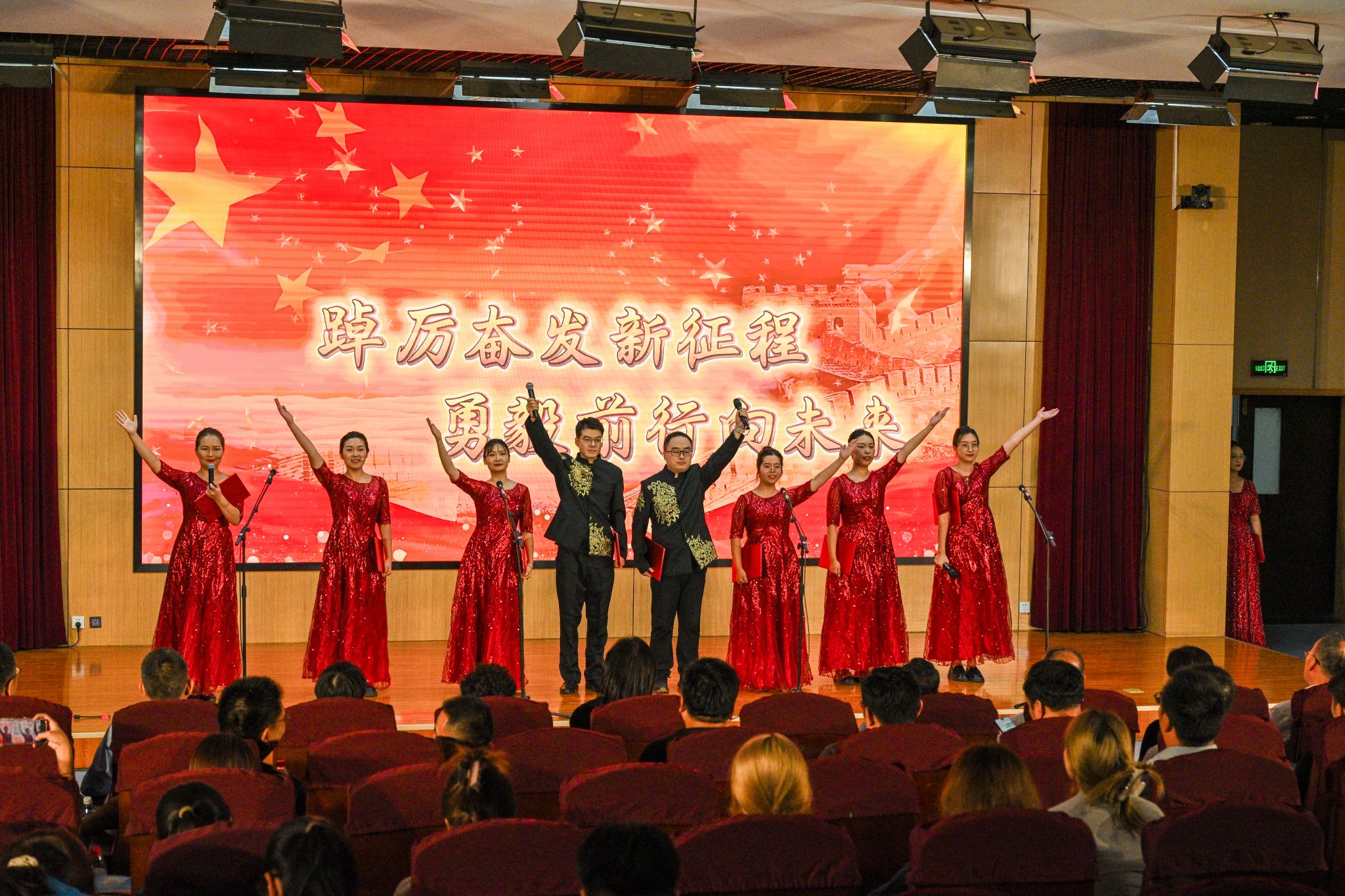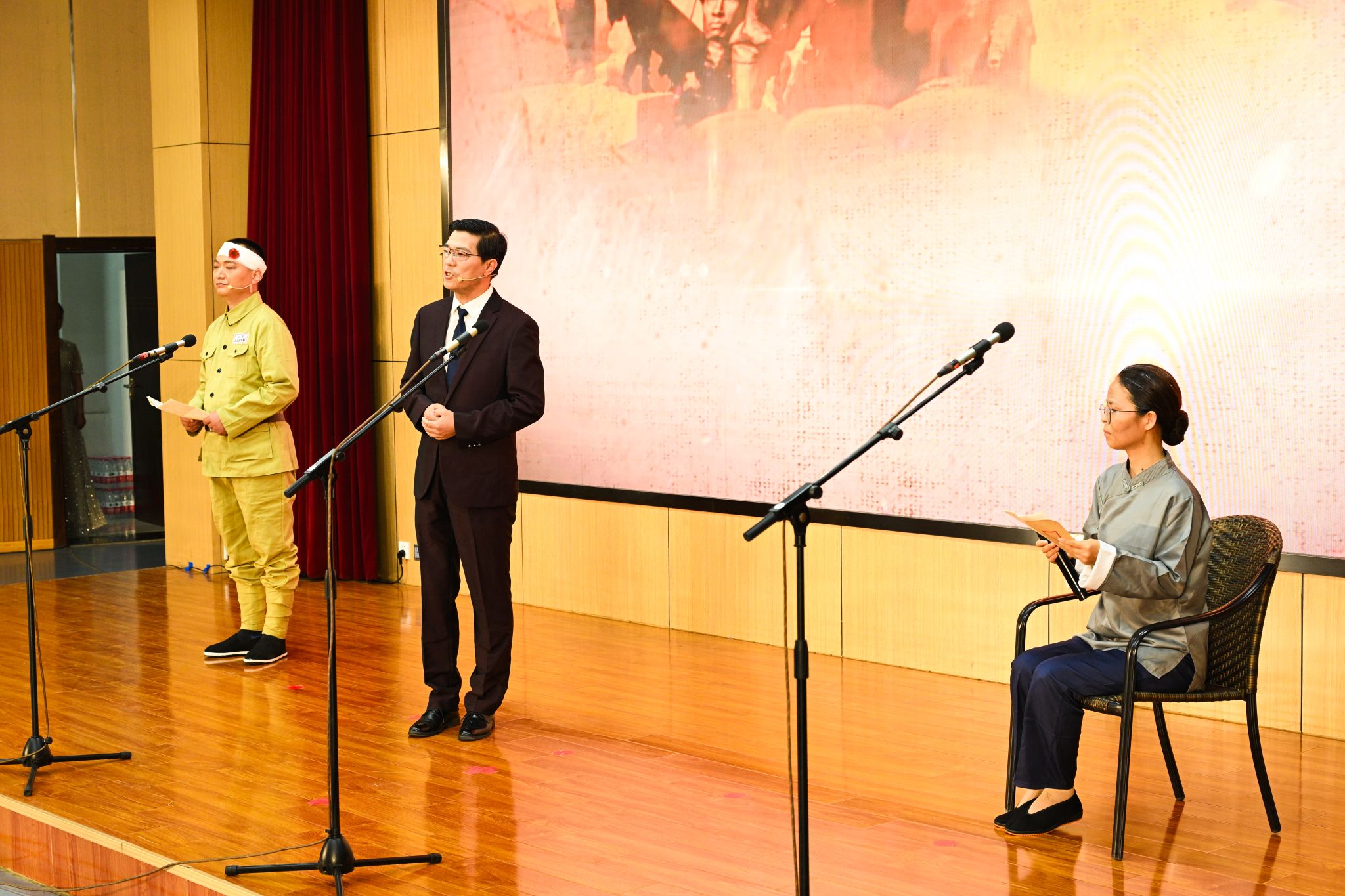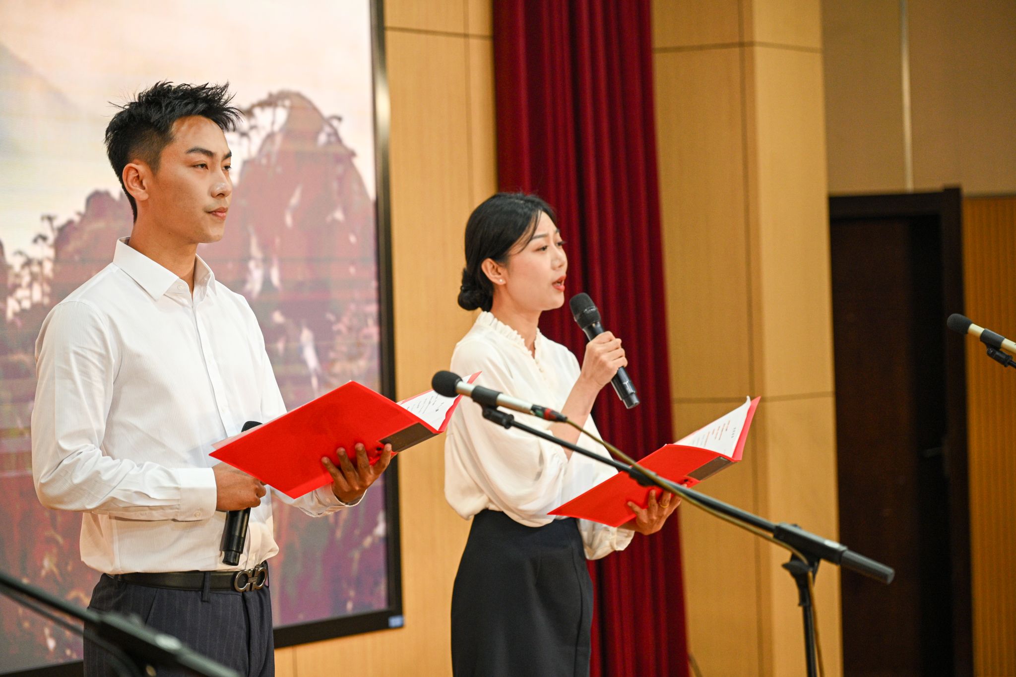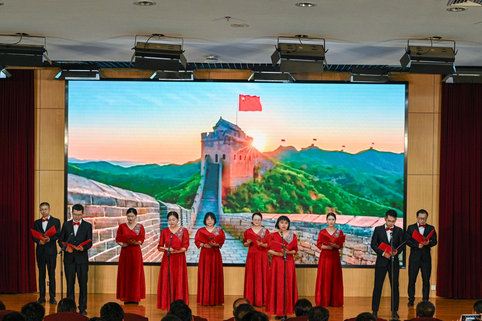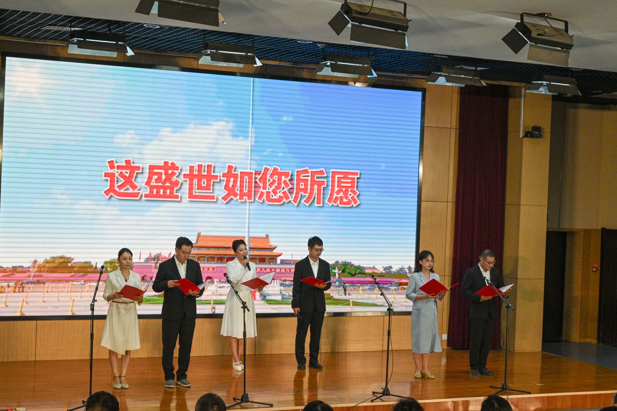 9月26日晚,由校工会主办,宣传部、校团委协办的“奋楫扬帆新时代 凝心聚力向未来”庆祝中华人民共和国成立75周年教职工主题朗诵会在图书馆学术报告厅精彩上演。校长李志健,校党委副书记王道安,校党委副书记、纪委书记、监察专员罗莹,副校长黄海峙出席朗诵会。来自20个分会的教职工演员以多样的表现形式深情朗诵,共同倾诉着对伟大祖国最深沉的爱。校党委委员,学校各职能部门、各学院主要负责人,师生代表近五百人观看了现场演出。