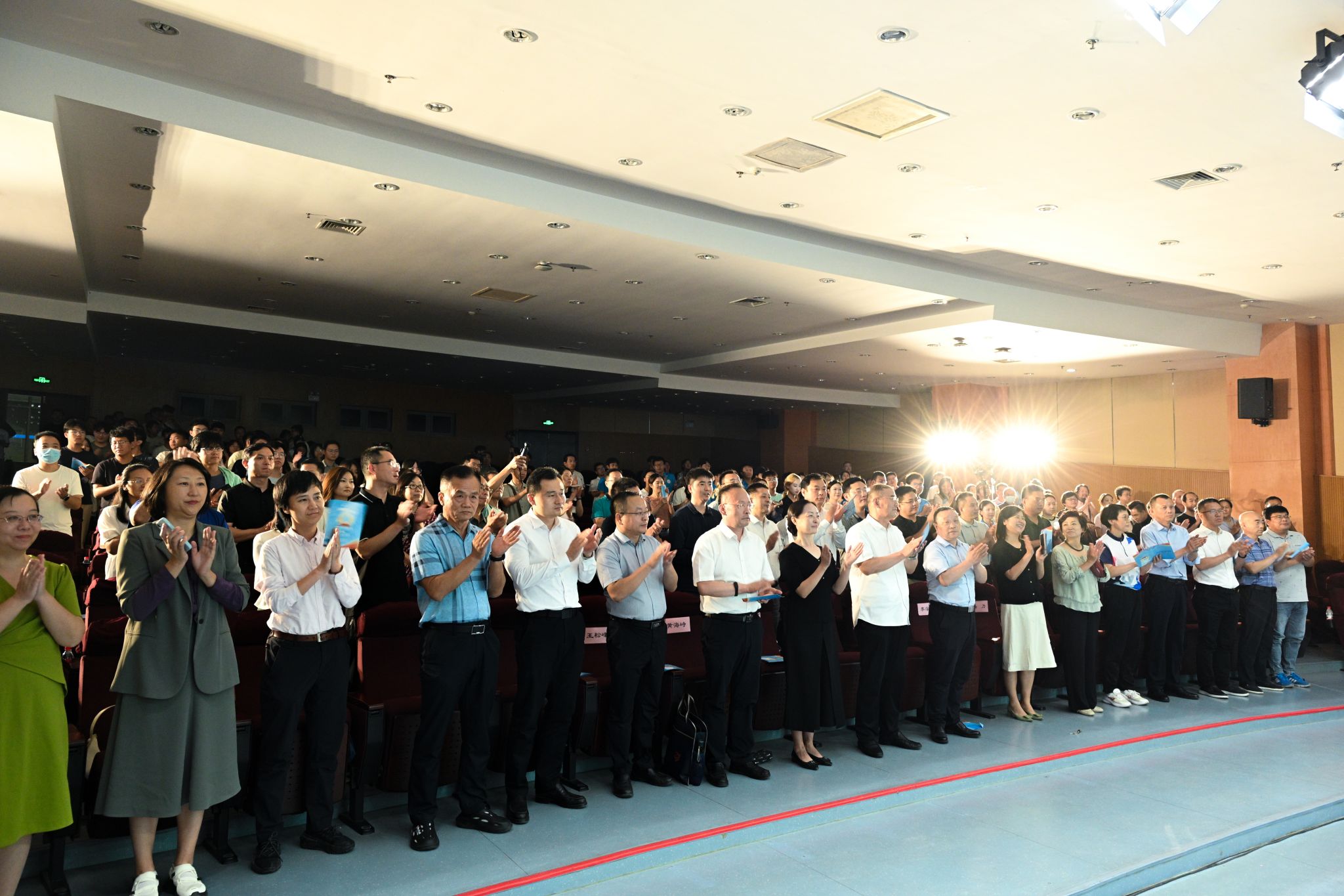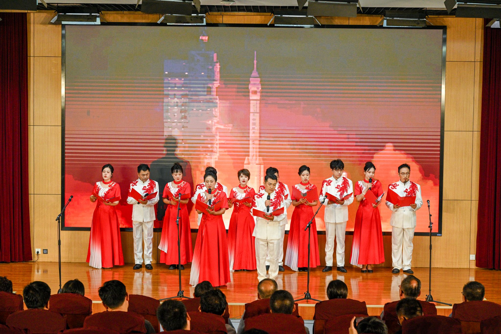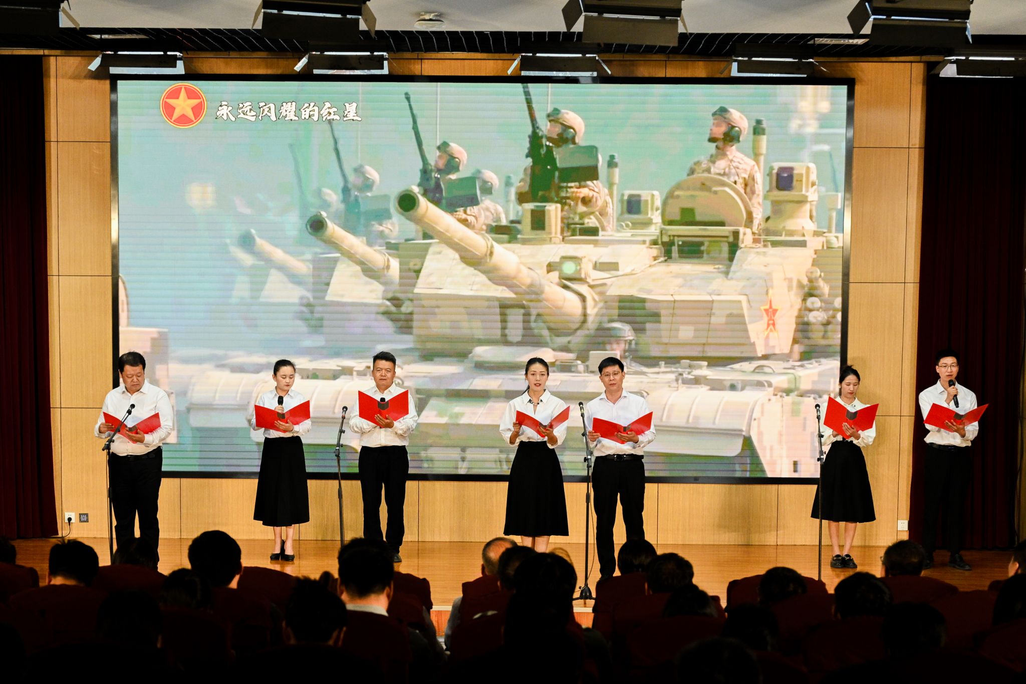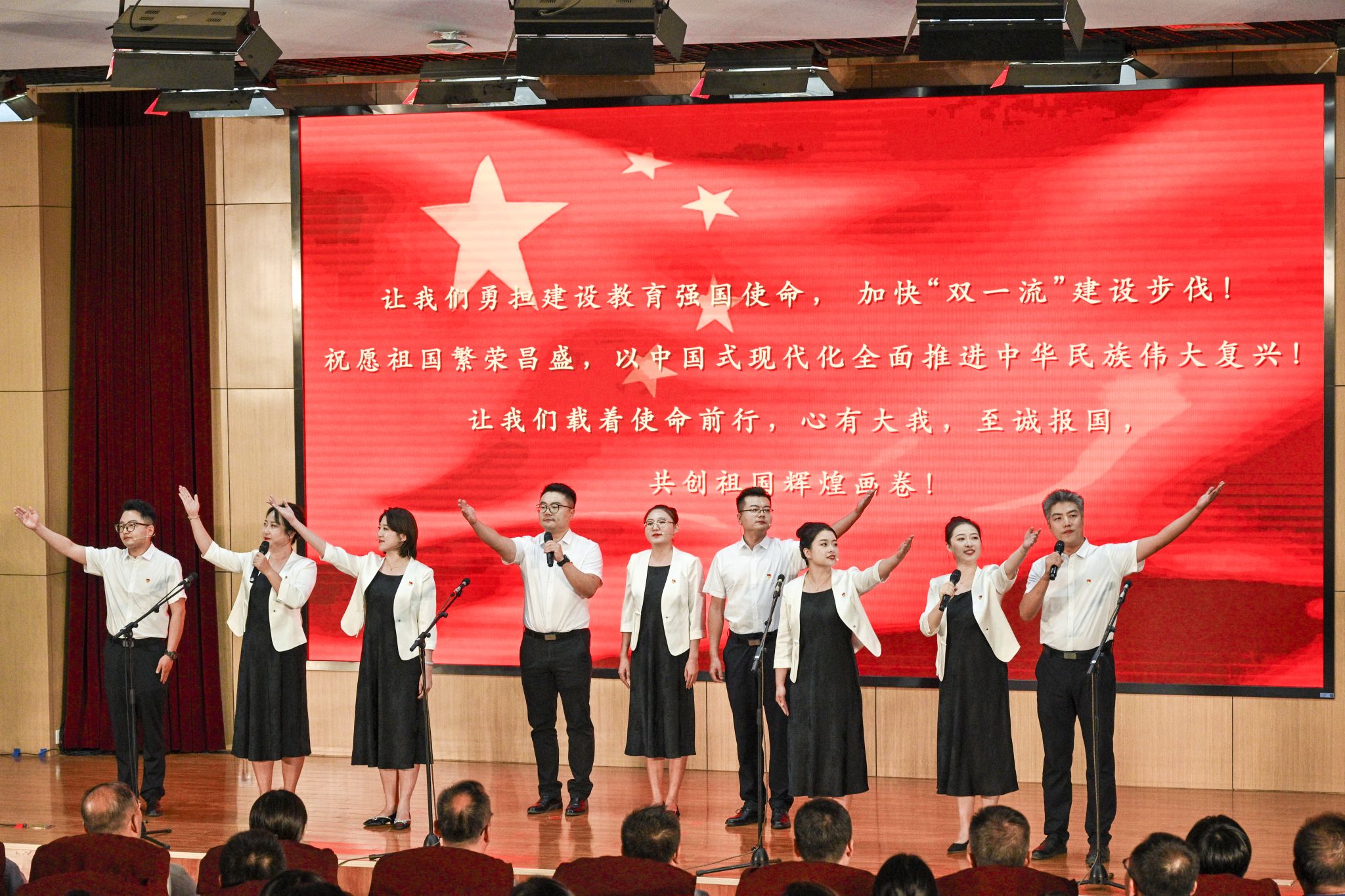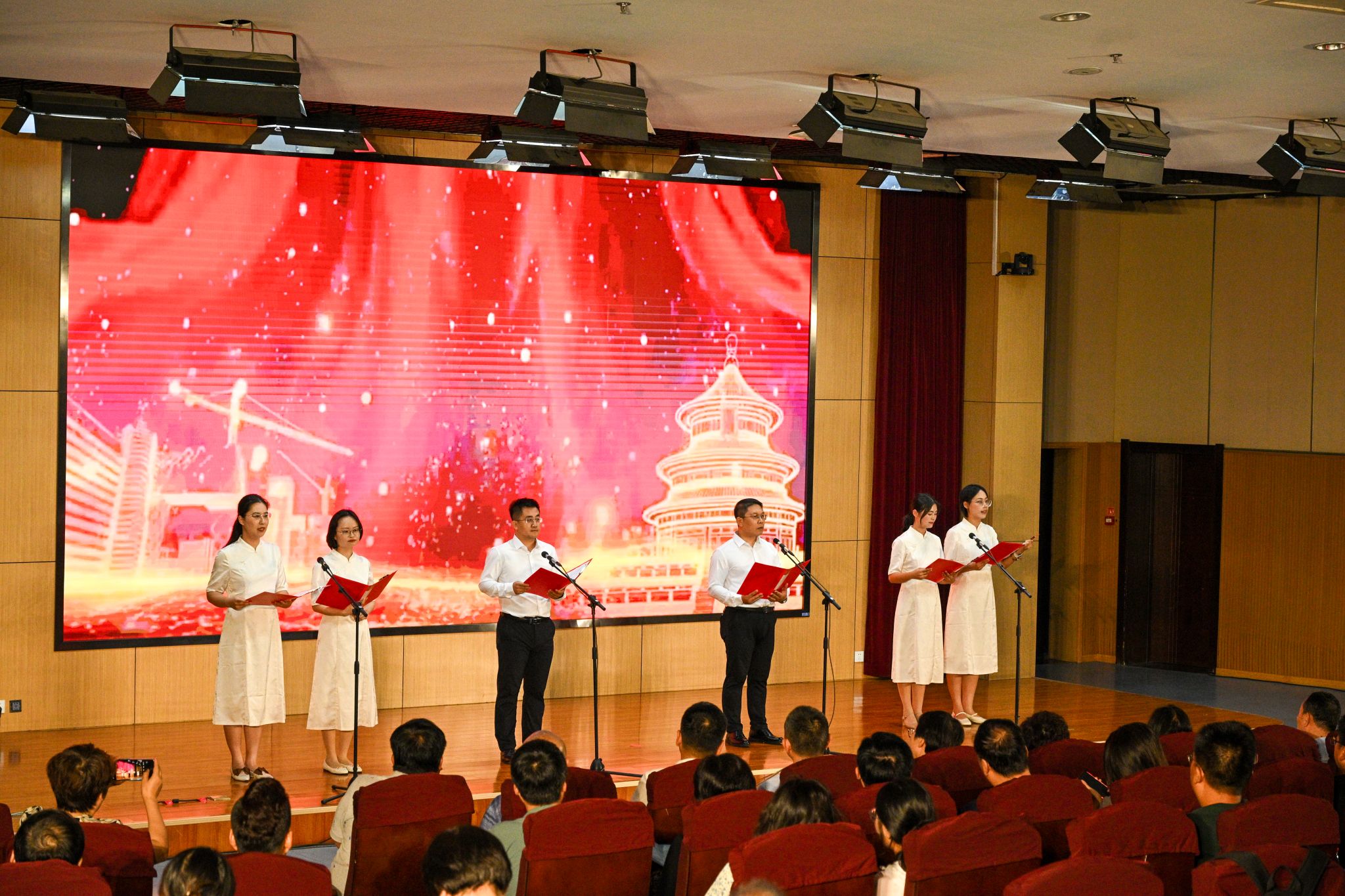 9月26日晚,由校工会主办,宣传部、校团委协办的“奋楫扬帆新时代 凝心聚力向未来”庆祝中华人民共和国成立75周年教职工主题朗诵会在图书馆学术报告厅精彩上演。校长李志健,校党委副书记王道安,校党委副书记、纪委书记、监察专员罗莹,副校长黄海峙出席朗诵会。来自20个分会的教职工演员以多样的表现形式深情朗诵,共同倾诉着对伟大祖国最深沉的爱。校党委委员,学校各职能部门、各学院主要负责人,师生代表近五百人观看了现场演出。