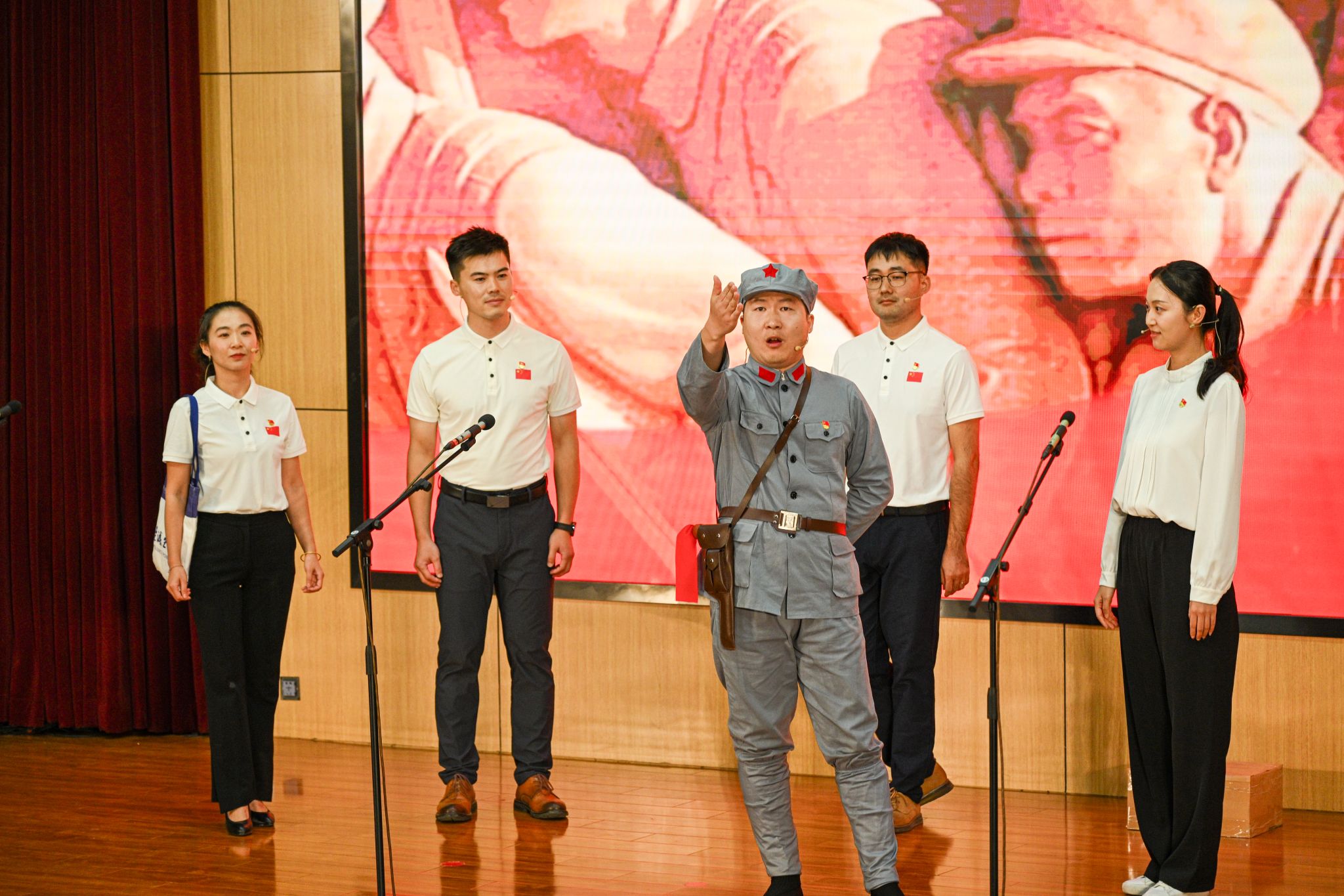 朗诵会气氛热烈,高潮迭起。朗诵者饱含深情,作品震撼人心。附中分会的朗诵作品《穿越时空的信》穿越了生死和时间,朗读了黄继光在战场写给母亲的一封信、黄继光的母亲邓芳芝写给毛主席的信,带领观众感受流淌在字里行间的家国情怀;食品学院分会的朗诵作品《信仰与传承》表现了学院青年党员参观陕甘边革命根据地照金纪念馆,与革命先辈刘志丹开展跨时空对话的场景,通过这一堂生动的主题党课,发出了科大食品人的铿锵誓言;机关分工的朗诵作品《等待》深情再现了“两弹元勋”邓稼先为新中国核事业隐姓埋名、以身许国,妻子许鹿希信守离别时的承诺,无怨无悔地等待了28年的心路历程,致敬中国崛起征程背后忘我付出的科学巨人们;物理学院、材料学院、轻工学院分会的朗诵作品《师魂·国魂》《载着使命前行,共绘祖国辉煌画卷》《追寻》中,老师们用饱含深情的话语,坚定地表达了广大教师大力弘扬践行教育家精神、加快建设教育强国的使命感、责任感,展现了立志谱写新时代教育高质量发展新篇章的坚实信念。