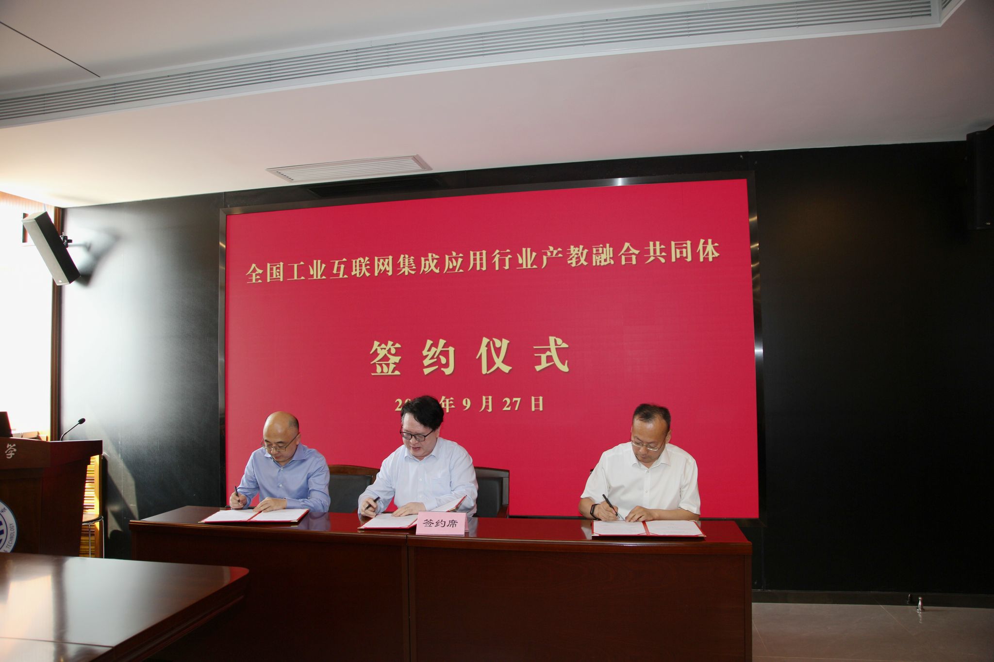 黄海峙代表学校与北京华航唯实工业软件科技有限公司、陕西国防工业职业技术学院签订了全国工业互联网集成应用行业产教融合共同体合作备忘录。