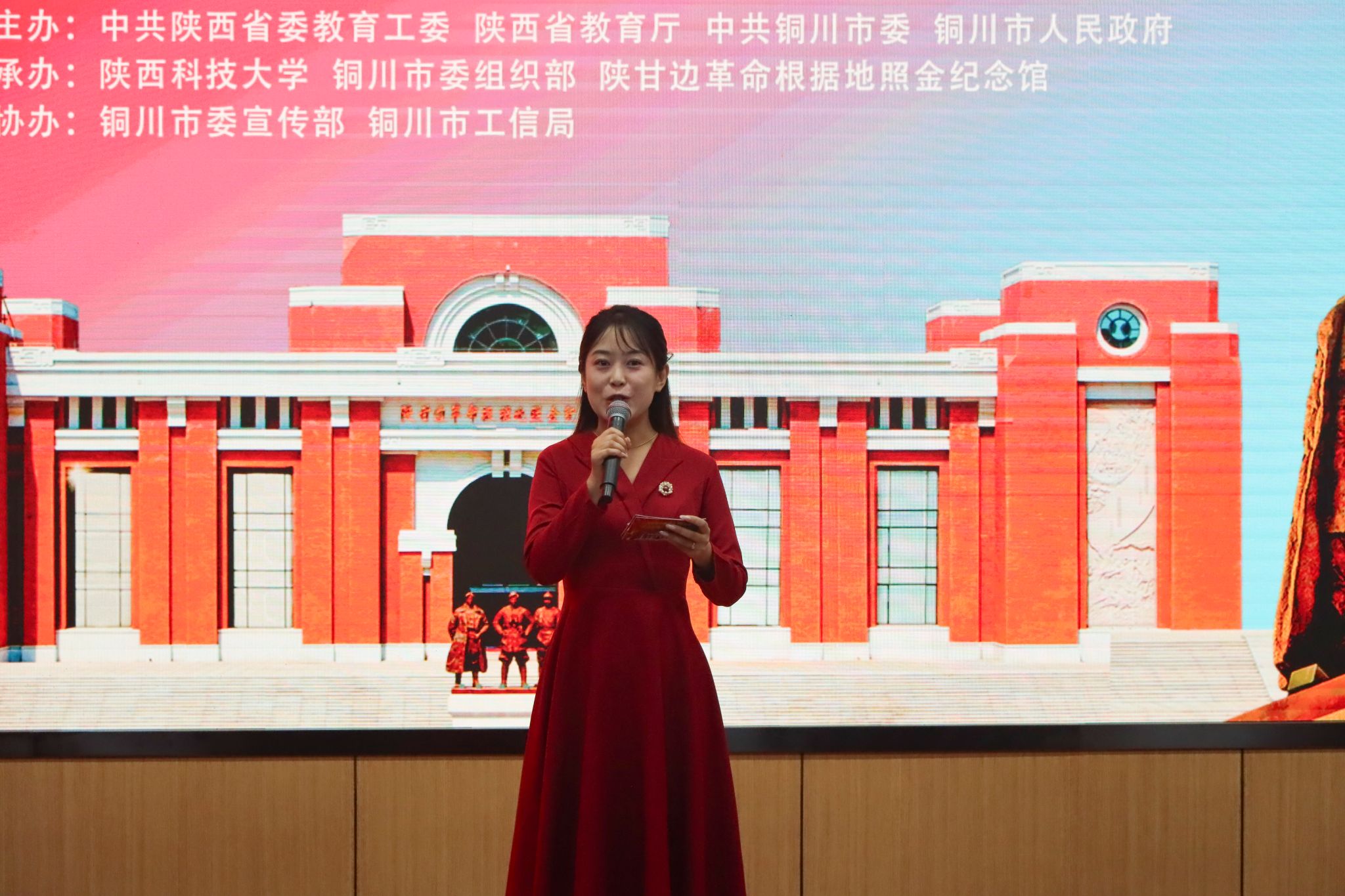 会前,与会领导及师生共同参观了设在图书馆南广场的专题展览。开幕式后,来自陕甘边革命根据地“红梢林”宣讲团演出了舞台剧《照金红》、红色歌曲《把一切献给党》、专题讲述《家国难全失儿泪》、音乐快板《照金精神谱新篇》等节目,以生动的艺术形式带领师生回忆峥嵘岁月、感悟照金精神。
