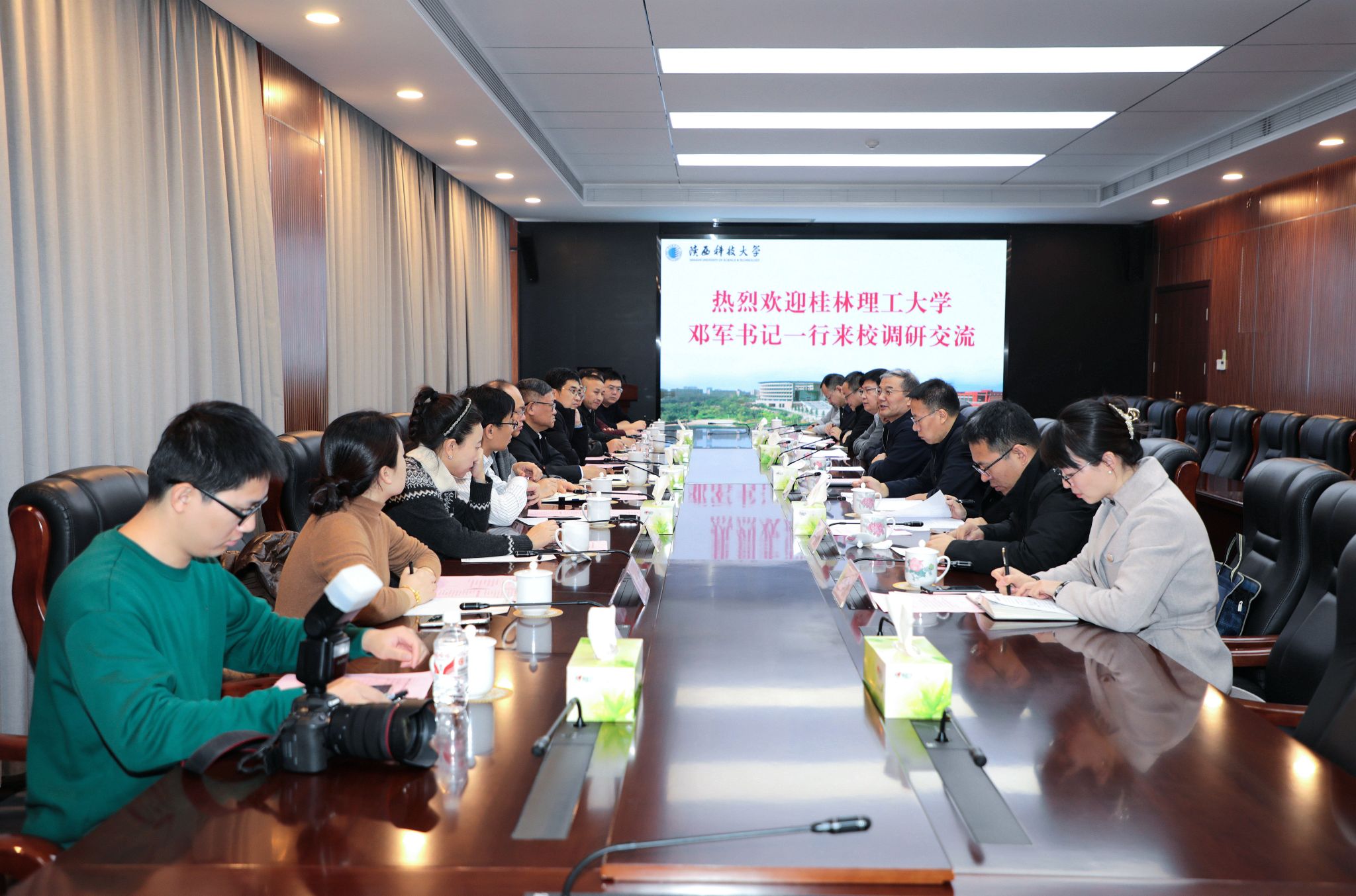 12月11日下午,桂林理工大学党委书记邓军一行来校调研交流,校长李志健出席座谈会并致辞。桂林理工大学副校长王磊、唐壮东,学校党委副书记王道安,副校长蒲永平、陆赵情参加座谈。